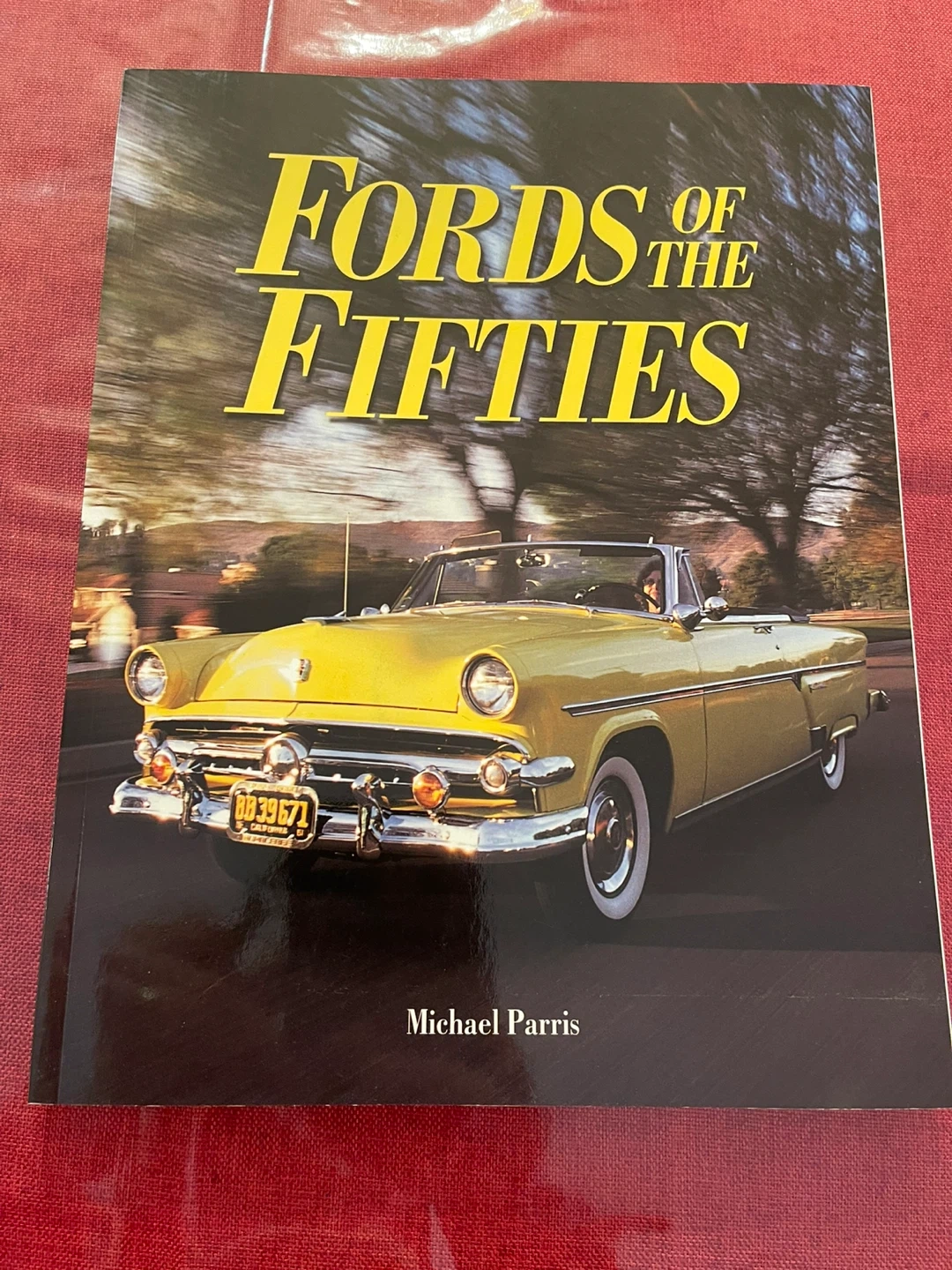 Selling a copy of "Fords of the Fifties" by Michael Parris. This book is a work of art and information about Ford cars during the romantic decade of chrome, fins and dual exhausts. It features original photography and information from the archives of Ford Motor Company, Henry Ford Museum and Greenfield Village, and the Detroit History's National Automotive collection. Soft cover. Cash only