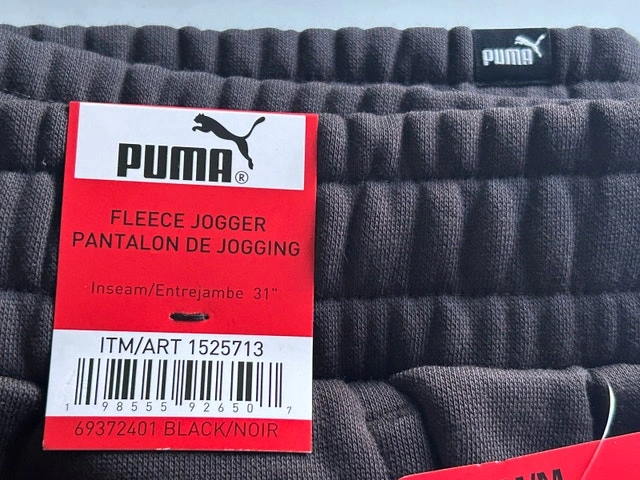 Brand new with tags. These are new Puma fleece joggers, perfect for lounging or working out, featuring a comfortable fit and stylish design. They are available in various sizes and they are black in colour. * Brand: Puma * Style: Fleece Joggers * Colour: Black * Size: Medium. If you're seeing this ad, the joggers are still available. Grab them before they're gone! Remember to check out my other ads. Discount available for multiple purchases!