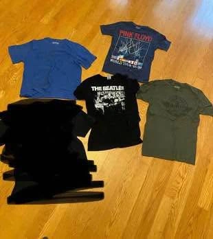 Take all for $35 otherwise see separate prices Major intersections are burnhamthorpe and confederation parkway Mississauga Beatles medium:$15 Led zeppelin medium :$12 Ac/dc medium :$12 Pink Floyd says it’s size medium but feels like a small:$14 McCartney Lennon Gilmor Page Jimmy Robert plant Heavy Clothes Rock Music Attire