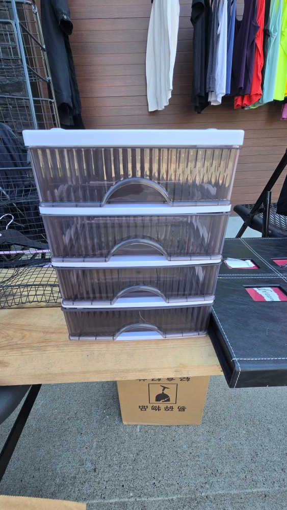 Here's a handy 4-drawer plastic storage organizer! It's perfect for tidying up any space, whether it's your closet, office, or craft room. The drawers slide out smoothly, making it easy to access your items. It's in great condition and ready for a new home - never been used!