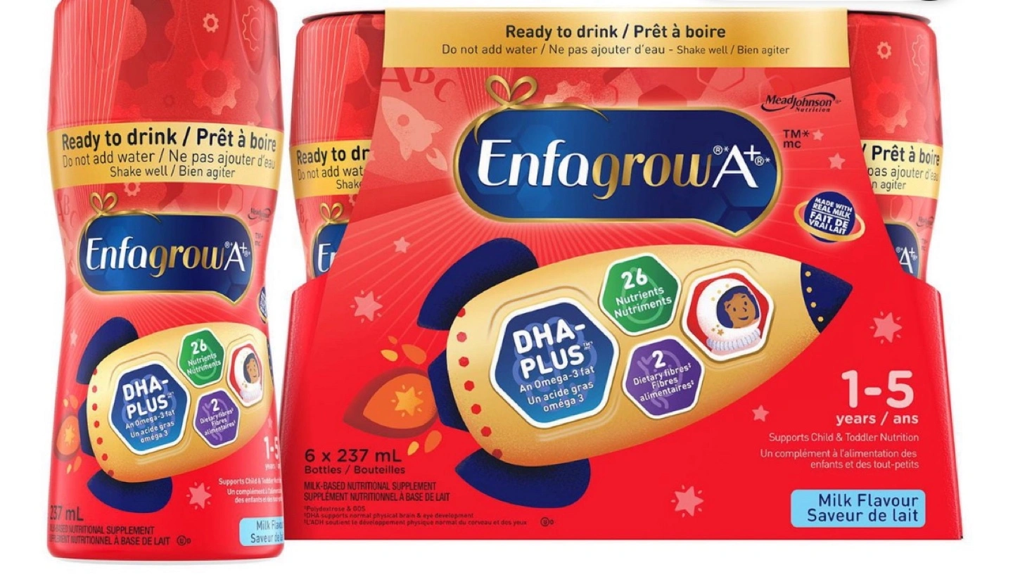 10Ready-to-drink milk-based nutritional supplement. Six 237 mL bottles. Ages 1-5 years. Contains DHA Plus and dietary fibre. Do not add water. Shake well.