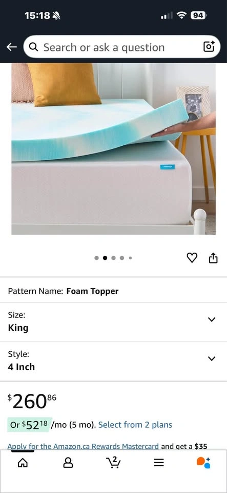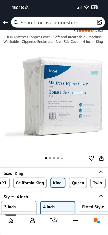 65Bought this for my new mattress used two nights ended up giving us pain . Comes with topper and a cover been in storage KING SIZE