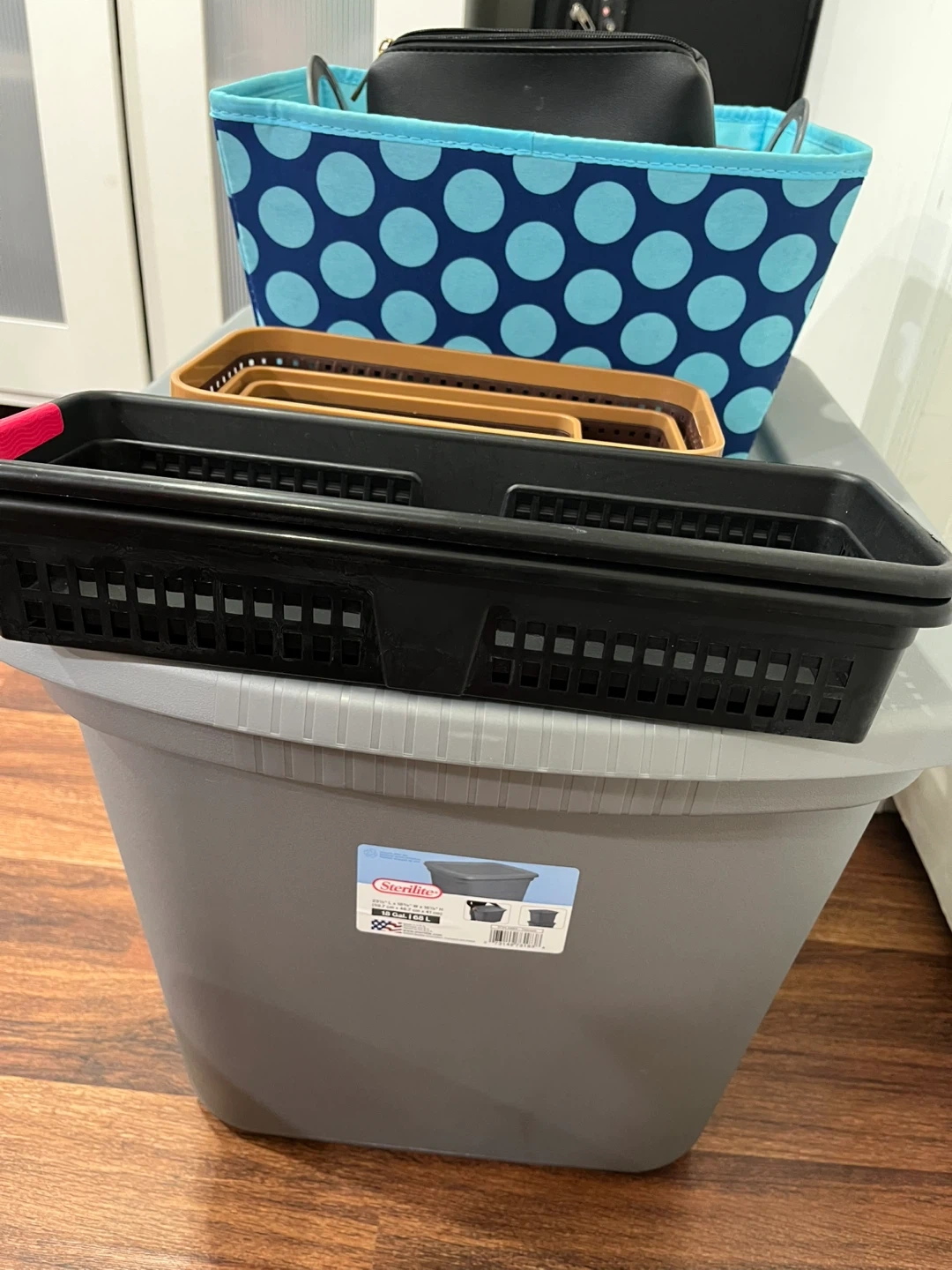 4 Storage baskets, 5 drawer/dresser organisers and 1 tote