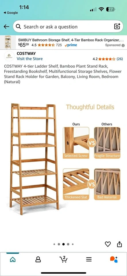 104 tier self standing bamboo wood stand - can be used for keeping books, coffee mugs, plants or whatever you'd prefer to keep. There are no damages and it's in a great condition