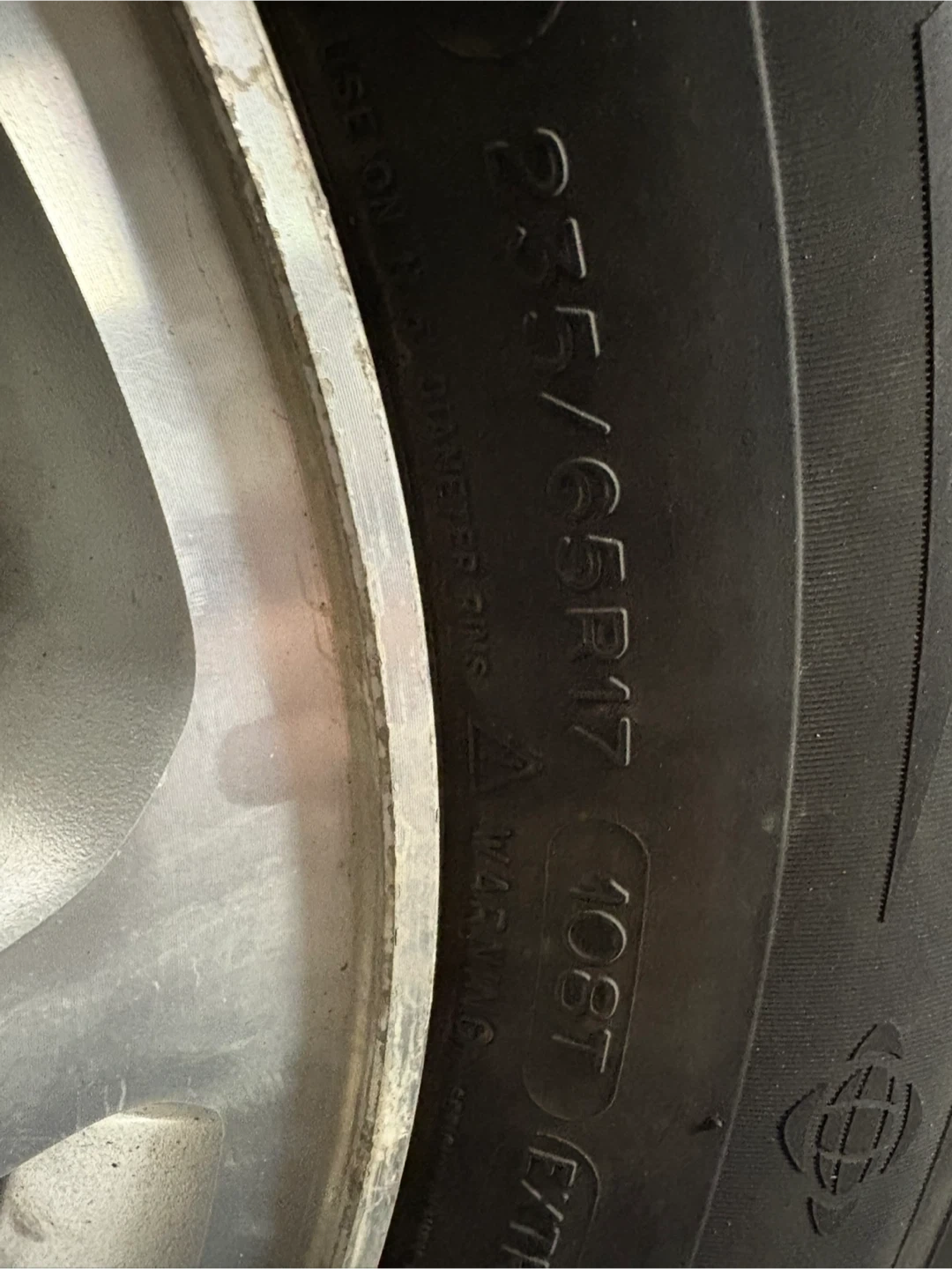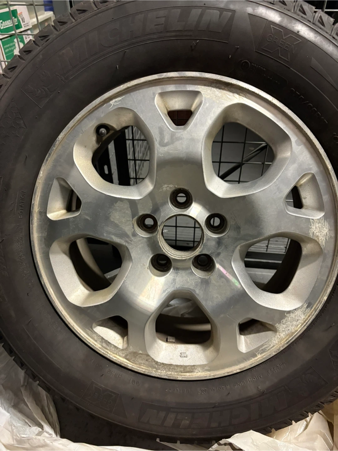 5Set of 4 winter 17” rims. Tire size 235/65R17 with decent tread left. Rims were previously used on a 2002 Acura MDX