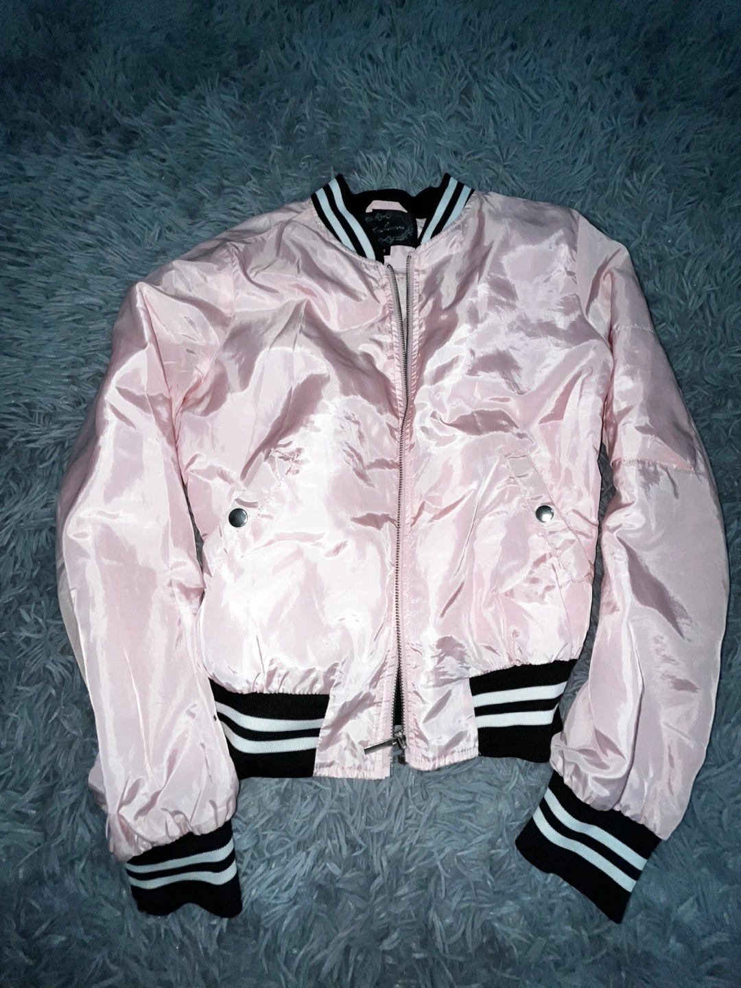 Buy & SellPink Satin Baseball Jacket Size SmallPink Satin Baseball Jacket Size Small$8Size small, light and fresh. Has a pocket on one sleeve.ConditionLike newBrandAmbianceWHERE TO MEETAt KFCView MapSELLERLizSunset16121 reviews1 chats·0 favorites·18 views