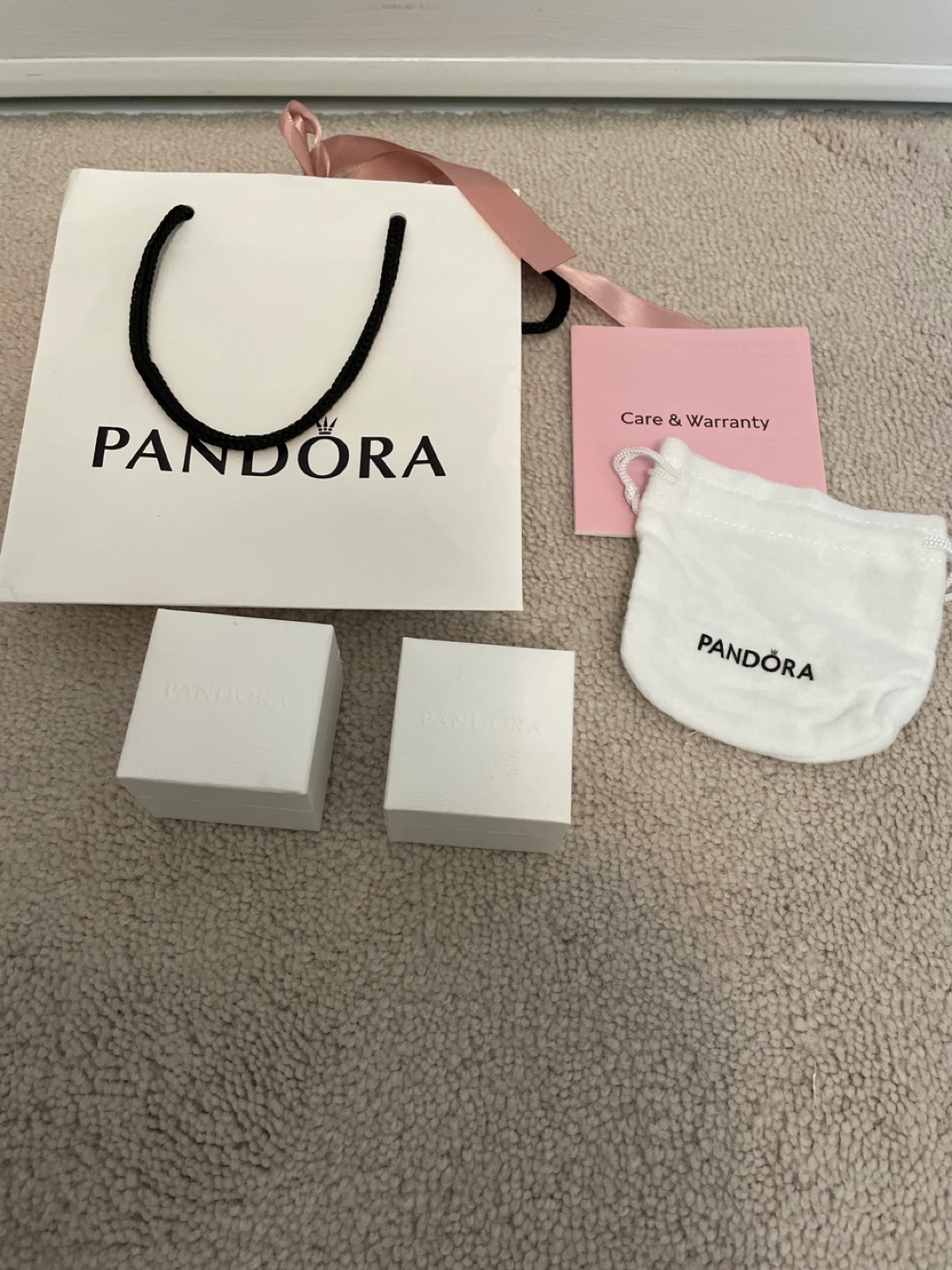 Two Pandora jewellery boxes, a Pandora gift bag, and a Pandora pouch. Perfect for storing or gifting jewellery. Brand new.