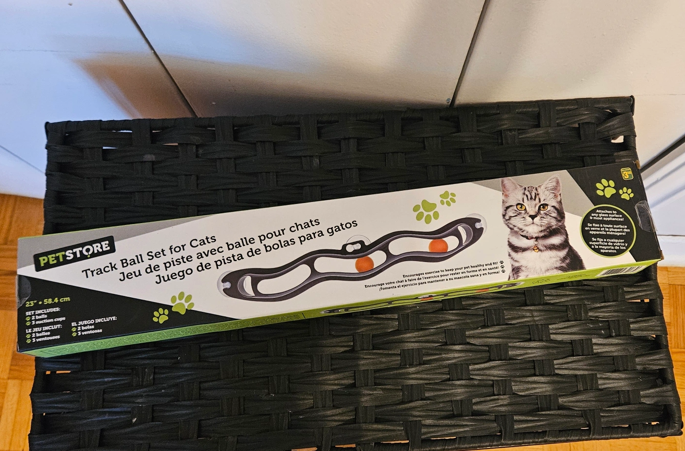 1000+Interactive cat toy. Features a track with two balls. Attaches to glass surfaces. Encourages exercise.