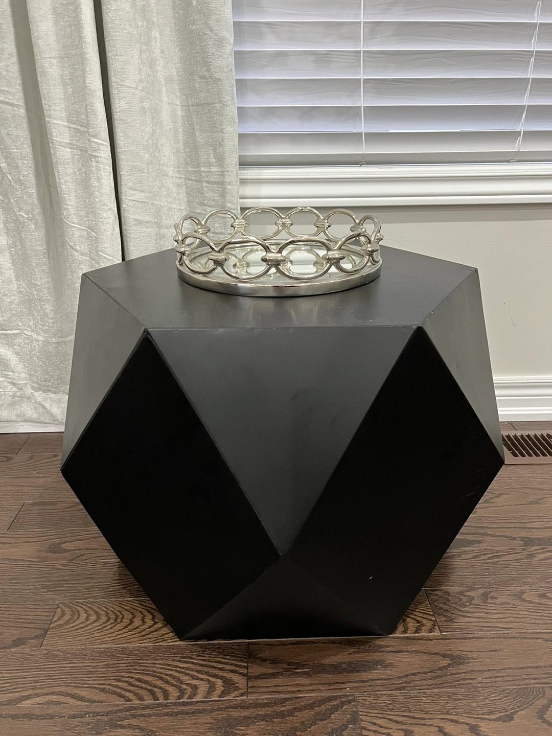 Black Hexagon shape side/end table perfect for any living space. Thin metal material.