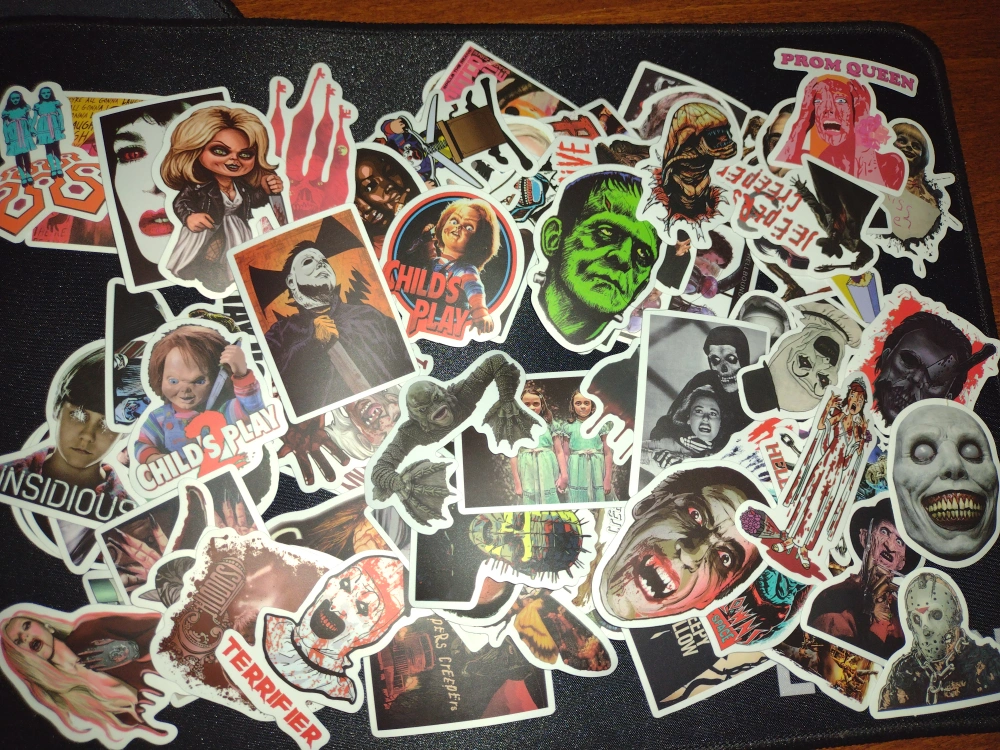Brand new Large collection of horror movie stickers. Features various characters and movie titles. Great for laptops, water bottles, or decorating. Many popular horror franchises represented.