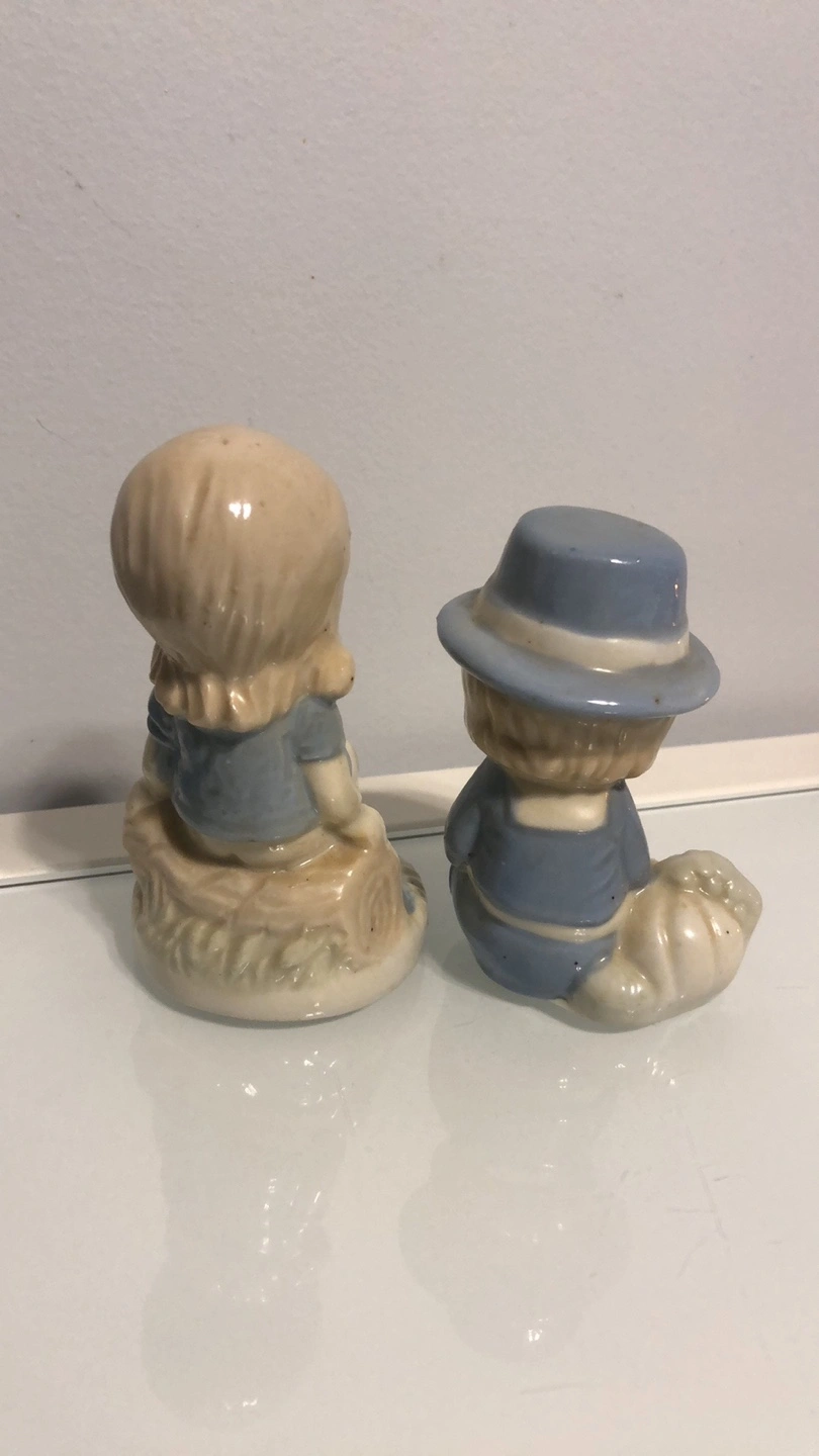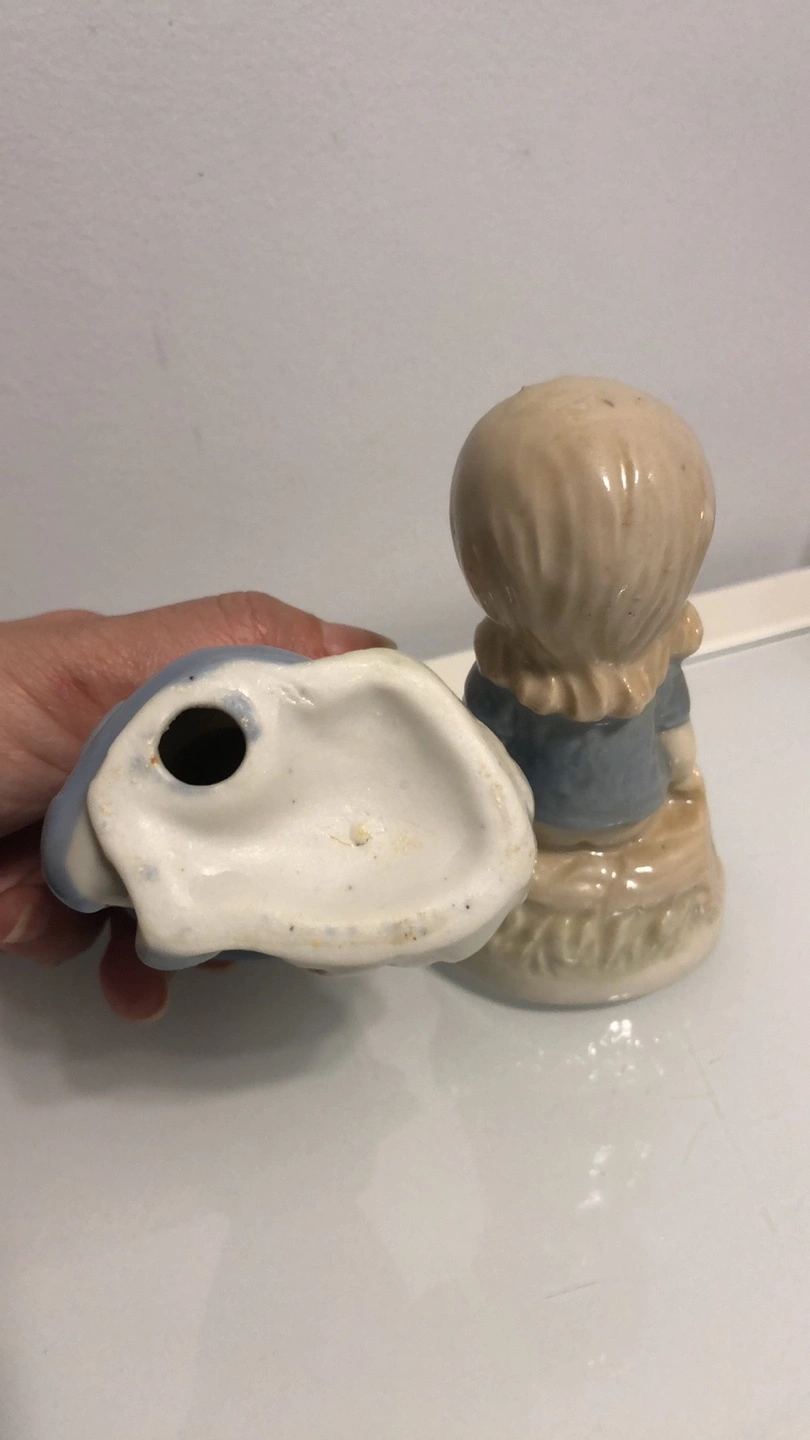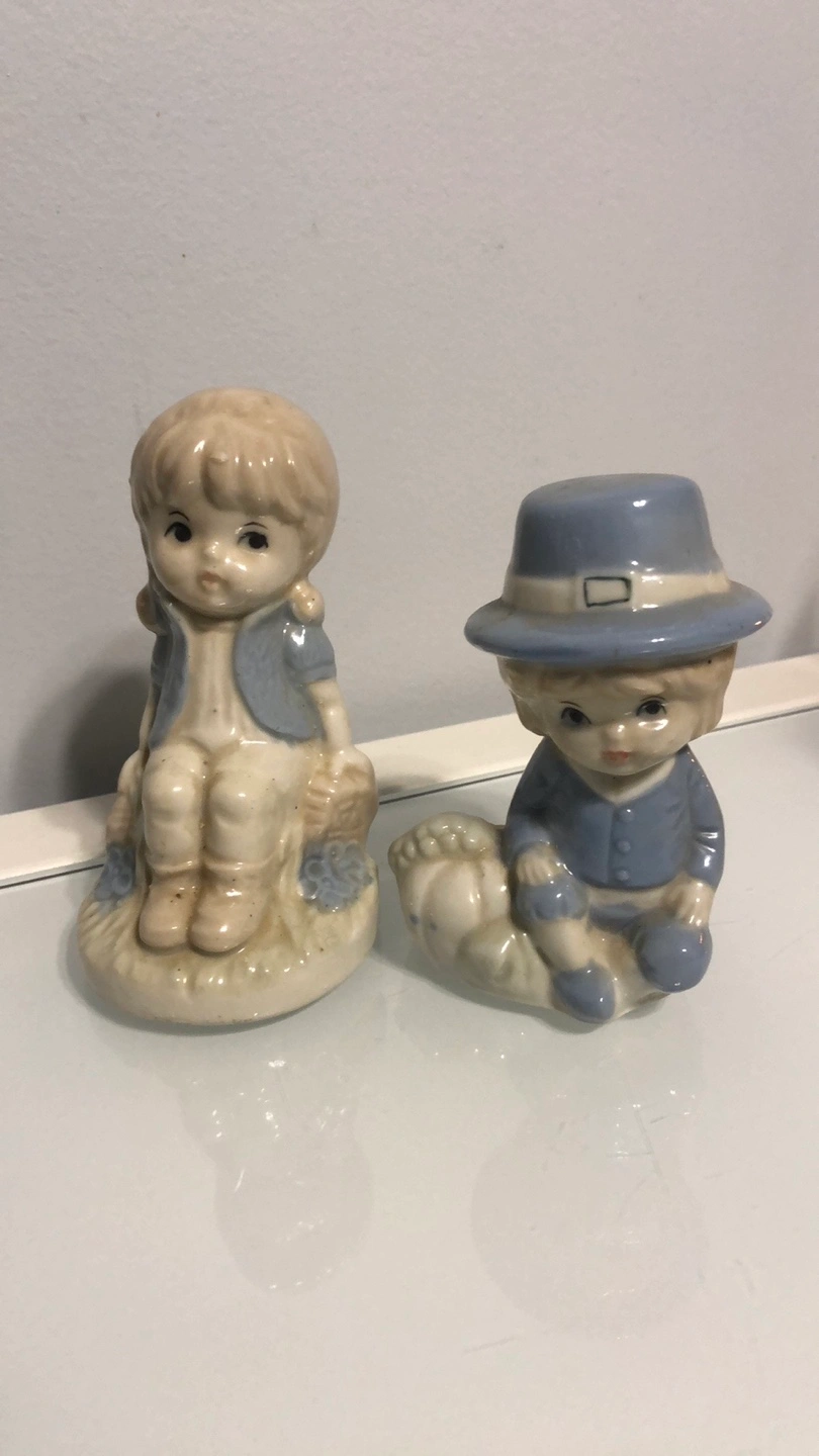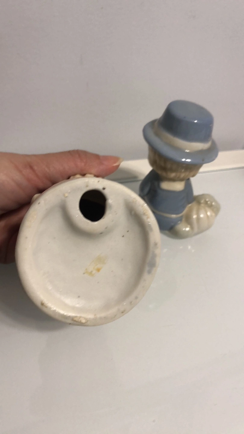 510Adorable vintage porcelain figurines. Two seated boys, one wearing a hat. Small and collectible. From an estate sale in an old citizen house Self Pickup at Coquitlam Parkways Blvd