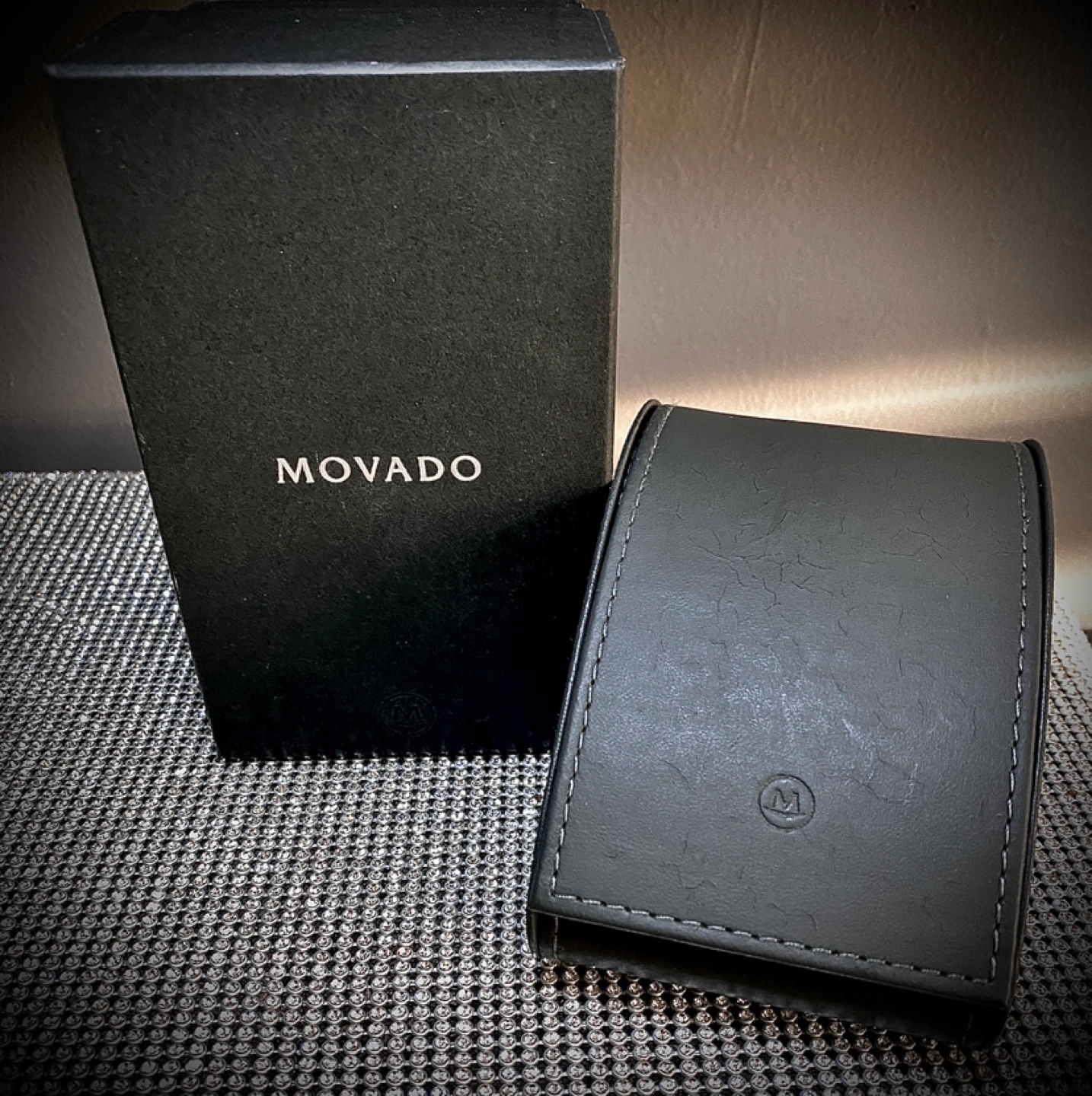328Grey leatherette watch travel case. Includes outer box. Perfect for storing and transporting your timepiece. Cash preferred pickup on Astoria Blvd South and 37th Street