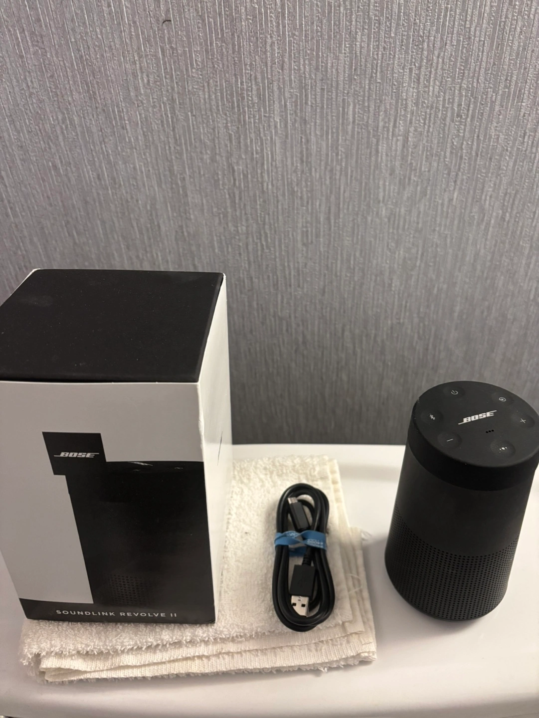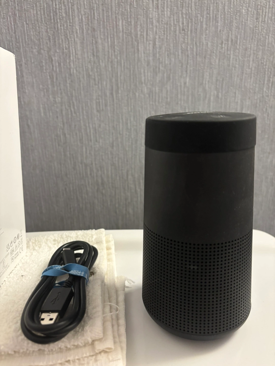 5Excellent condition. Black portable Bluetooth speaker. Includes charging cable and original box. Great sound quality. Only used twice looks brand new amazing Bose sound