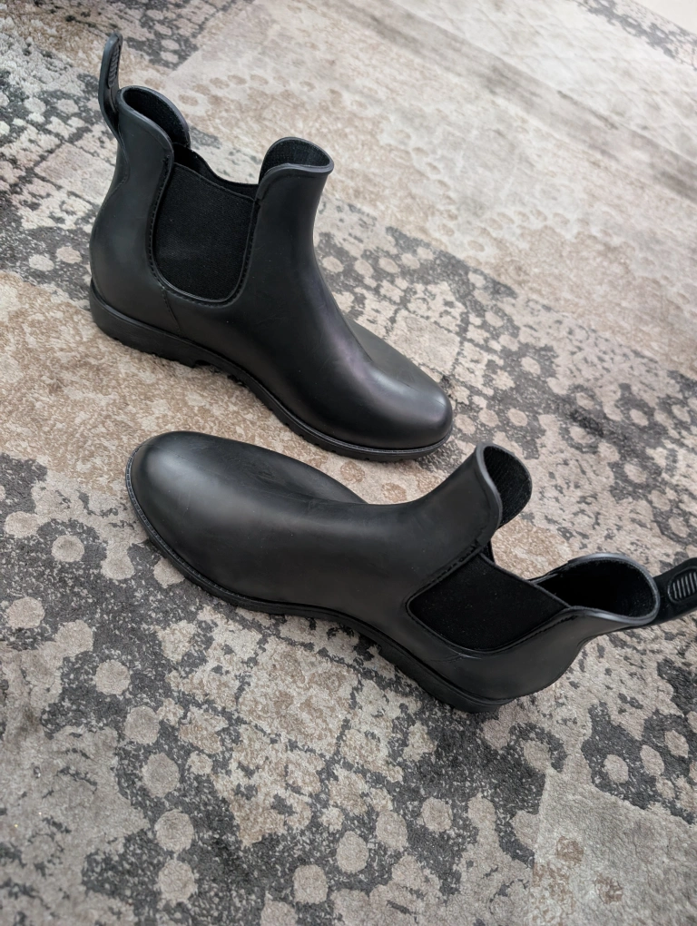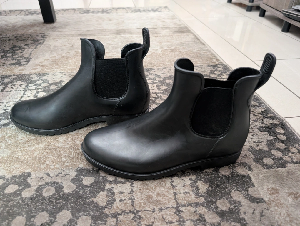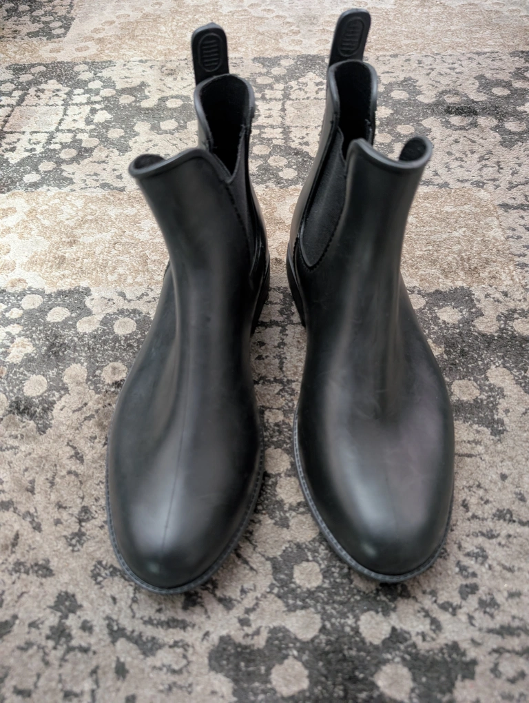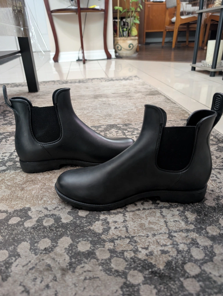 Very sleek and chic Chelsea style rain boots for men. Low heel. Excellent for rainy and snowy weather. Size 8 (41). Brand new, never worn. Comes with a box. Pick up in Scarborough, cash only π