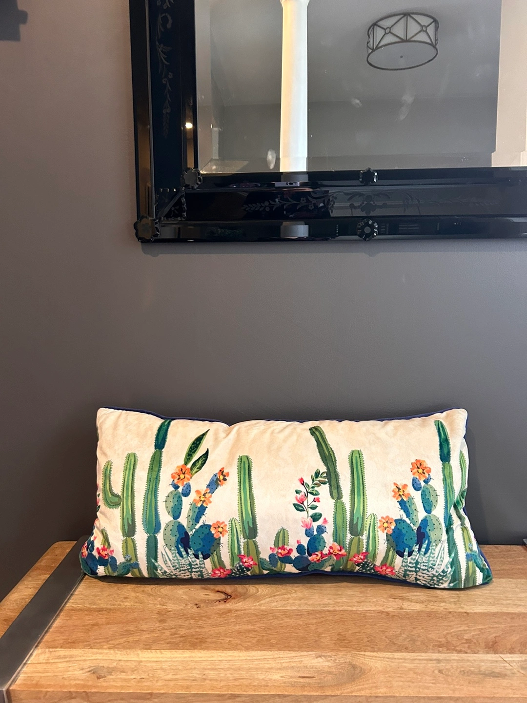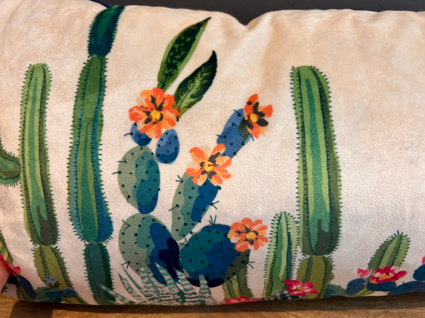 Velvet Cactus Print Lumbar Pillow