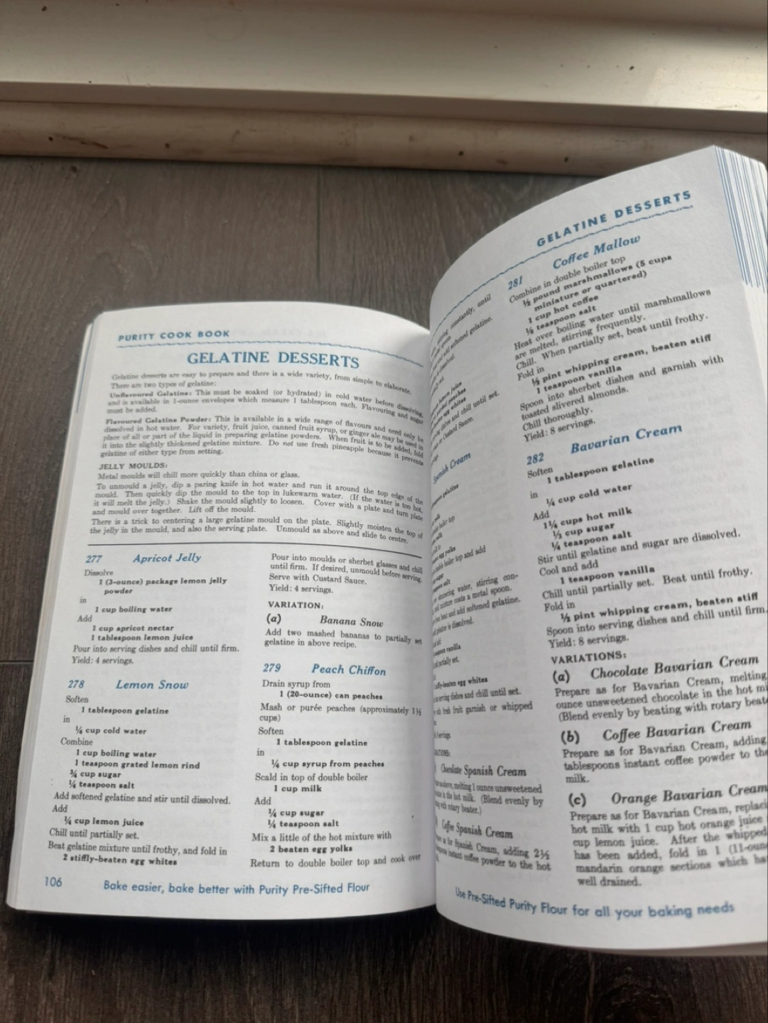 Classic Canadian cookbook. Foreword by Jean Paré. Historical notes by Elizabeth Driver. Recipes for Canadian cooking. Includes baking tips using Purity-Sifted Flour.