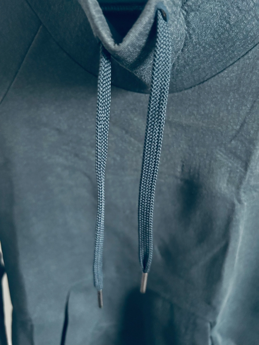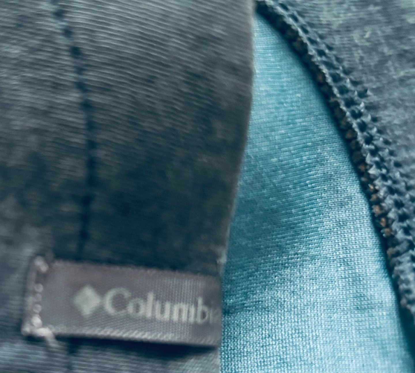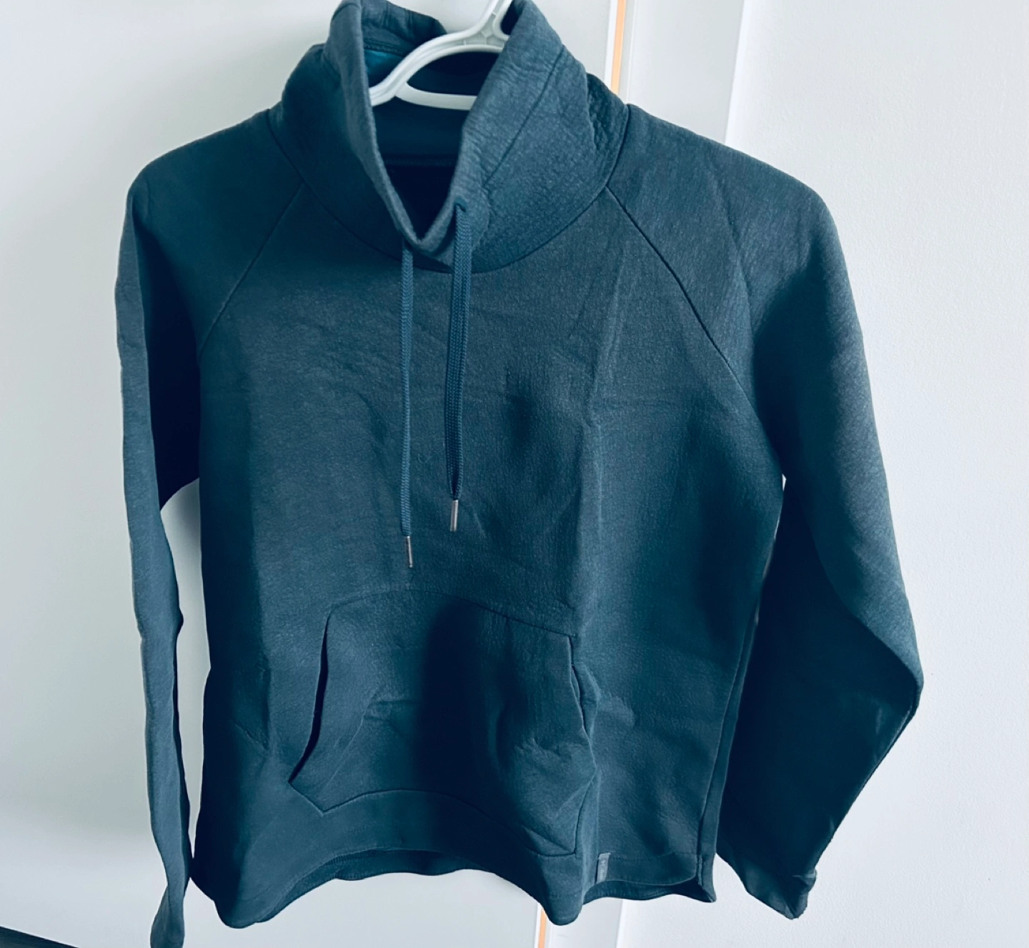 Columbia women's pullover sweatshirt. Mock neck. Long sleeves. Front pouch pocket. Dark teal colour. Excellent condition.