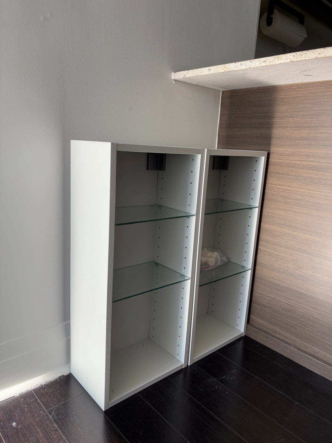 Ikea Vattern white shelving units. medicine cabinet. Glass shelves. wall mounted.