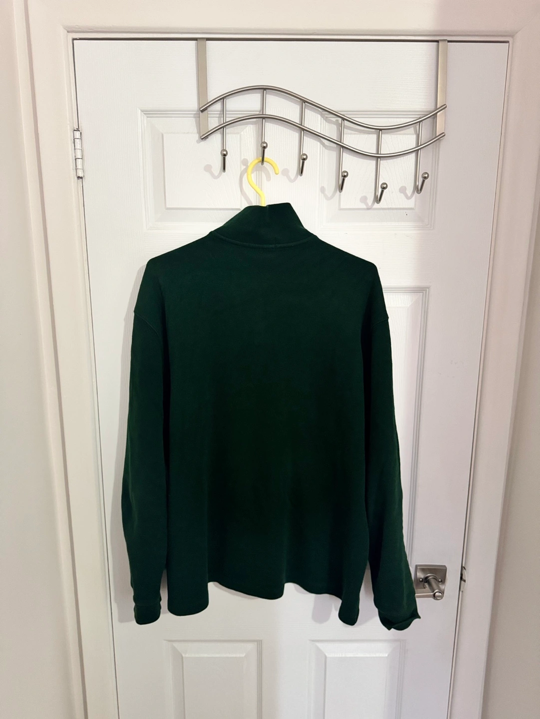 360Men's size XL Polo Ralph Lauren quarter-zip sweater. Dark green colour. Made in Sri Lanka. 100% cotton. Excellent condition. Men's Polo Ralph Lauren Green Quarter-Zip Sweater - Size XL Condition: in excellent condition Price: 50 cad cash or best offer Location: 807 Brimley Road Scarborough (pick up location) Meet up: Line 1 or Line 2 subway or downtown Please see my other listing. Happy Shopping.