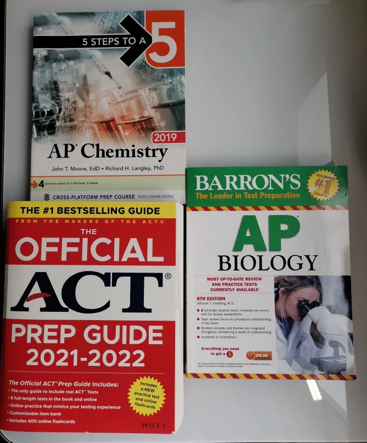 AP Biology and AP Chemistry textbooks. ACT prep guide. Excellent condition.