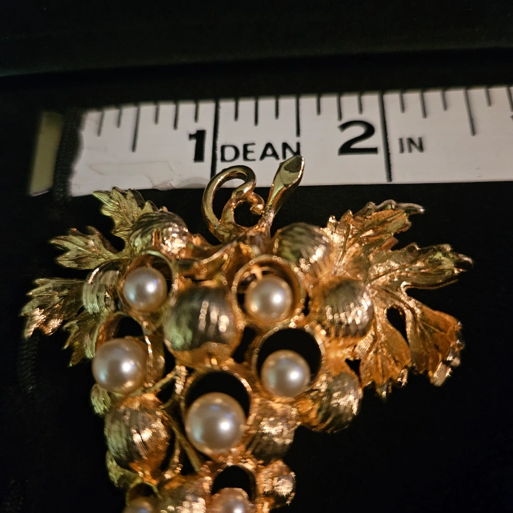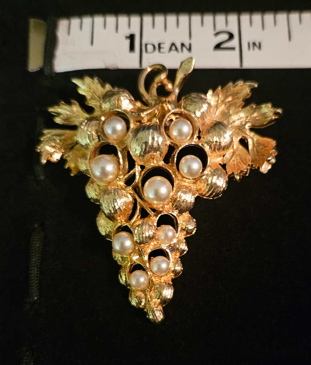 An eye catching Statement Brooch of a beautifully detailed grape bunch with accents of delicate faux pearls