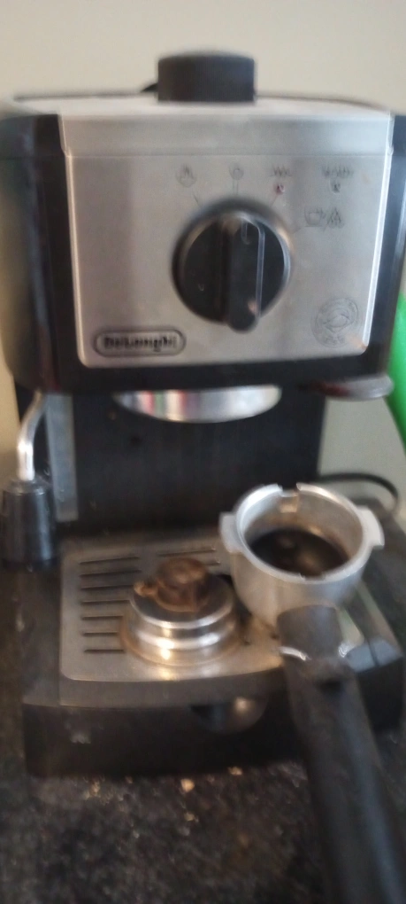 Used Delonghi espresso machine. Includes portafilter and group head. Shows some signs of use.Works well expresso cups included as well as instructions