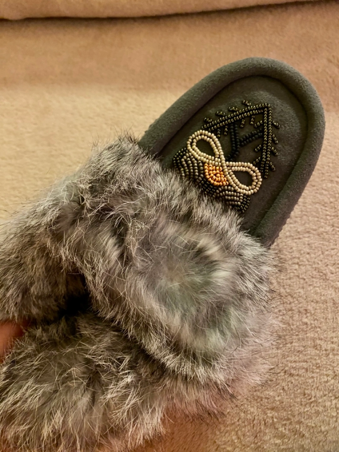 This is Manitobah's best-selling Tipi slipper, adorned with exclusive beadwork that's designed by Prairie Owl Beads. The slipper delivers all of the sleek beauty and practicality of a traditional indoor moccasin. Whether you're hanging out around the house or going about your day at the cottage, you'll live and lounge in Tipi's comfort everywhere. Trimmed with fur and crafted of soft, breathable suede, Tipi slippers deliver luxury you'll enjoy over and over again. The fleece footbed keeps you cozy while its soft suede sole offers barefoot-style comfort. Embrace comfort at a fabulous showstopper value, right here at TSC!