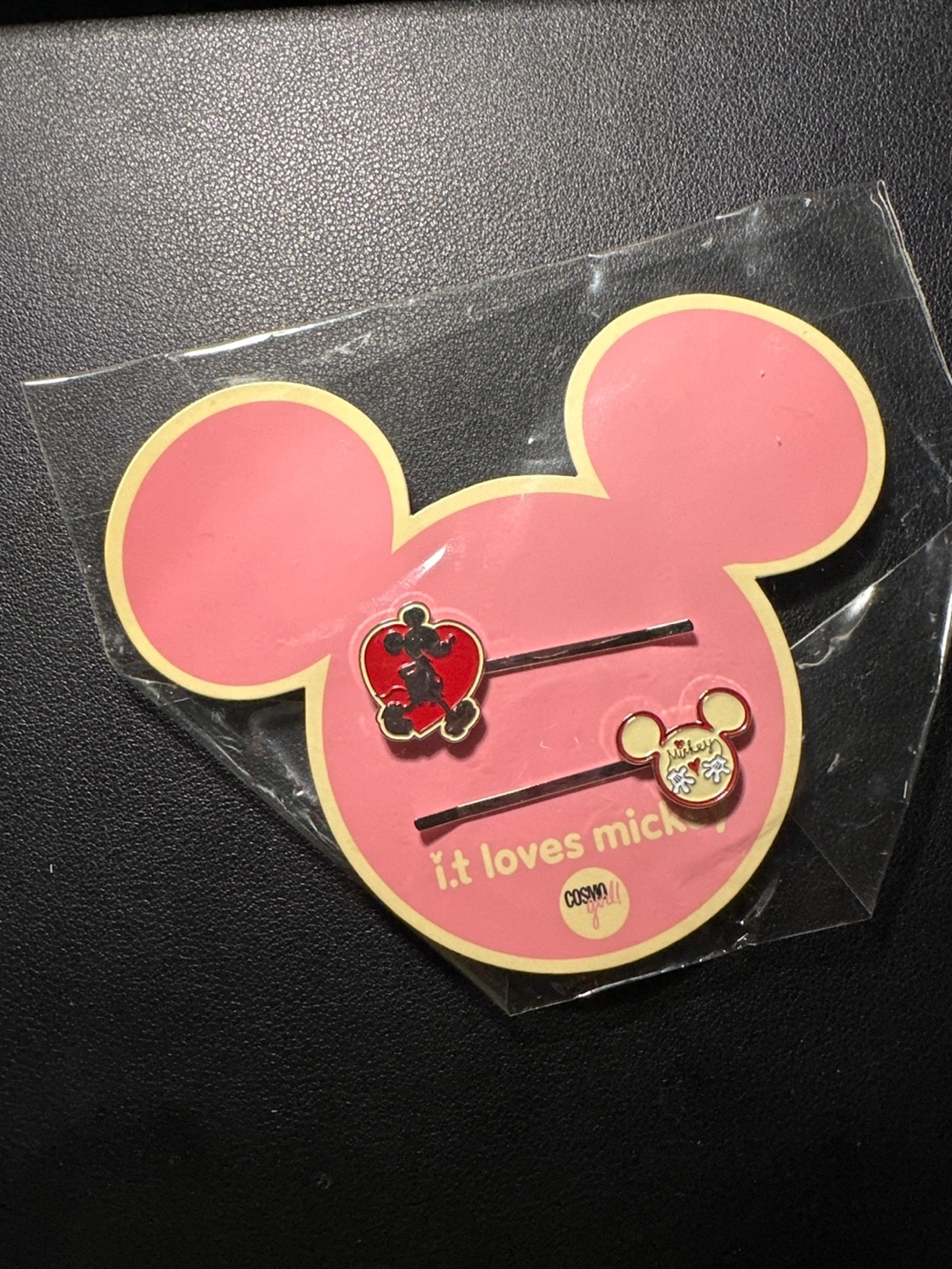 Adorable Mickey Mouse-themed hair clips. Set includes two clips, one featuring a red heart and the other a Mickey head. Packaged on a cute Mickey Mouse-shaped card. Perfect for adding a touch of Disney magic to your hairstyle.
