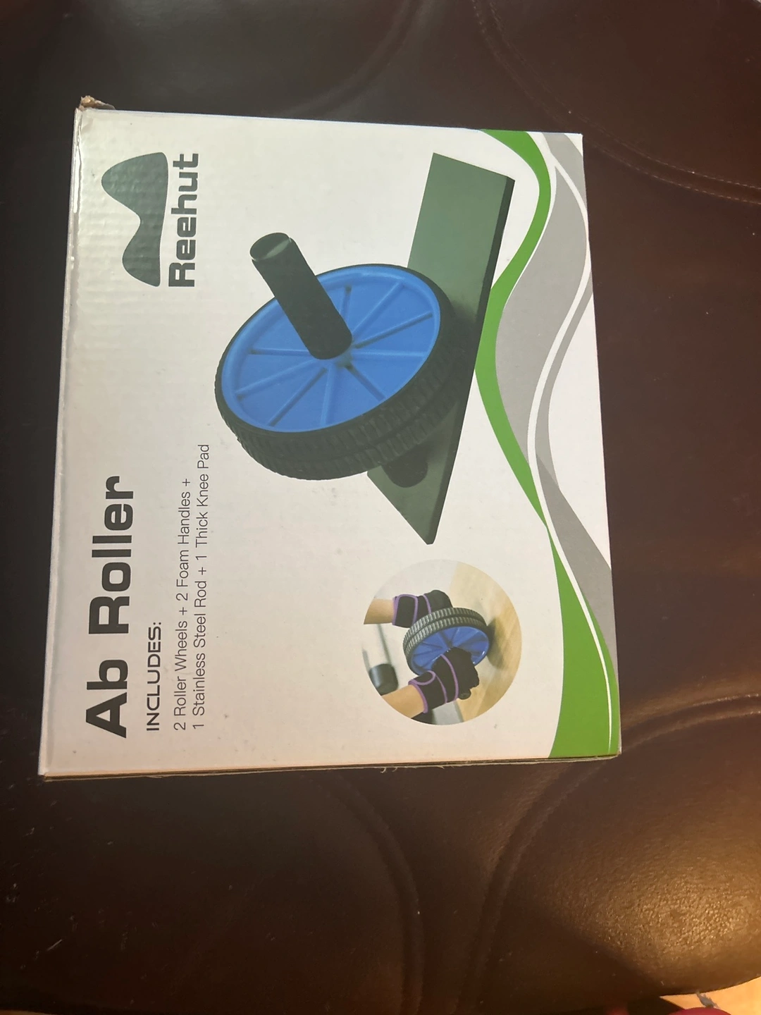745Ab roller wheel exercise equipment. Includes two roller wheels, two foam handles, a stainless steel rod, and a thick knee pad. Great for core strengthening.