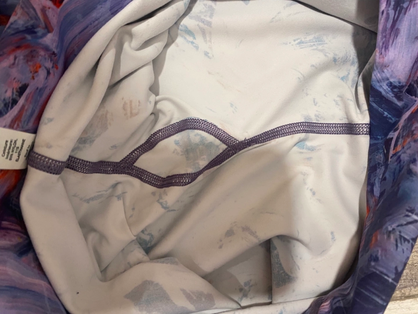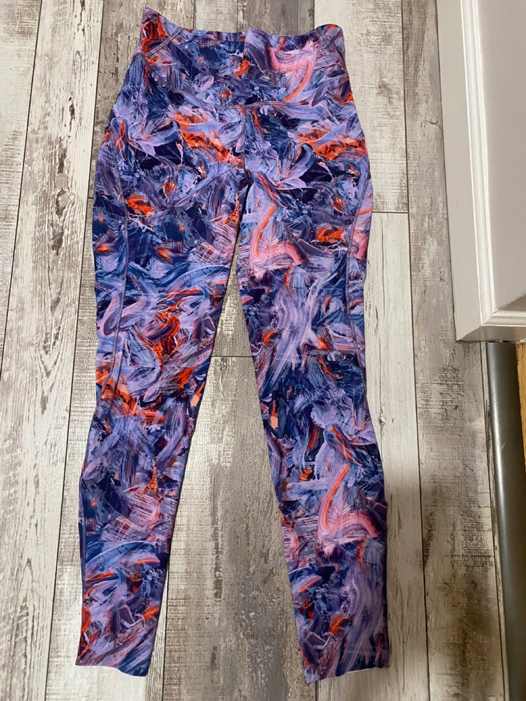Women's athletic leggings. Size 8. Multicolored abstract print. High-waisted. Pockets on sides. Excellent condition.
