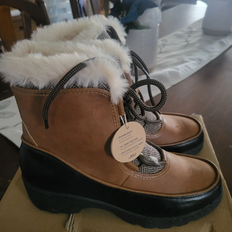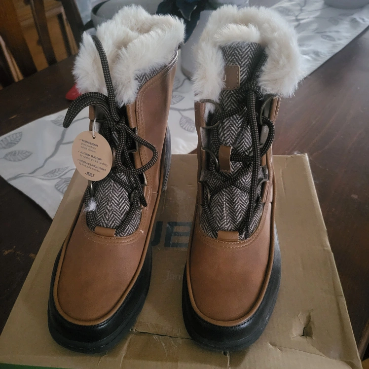 Brand New in box (box ripped) Women's size 9 winter boots. Brown leather with faux fur trim. Lace-up style. All-weather traction. Breathable lining. Check out my other items. Great gift ideas.. Discount when bundling items. pick up St.Clair Ave west and Laughton Ave (M6N 2X7) Xposted