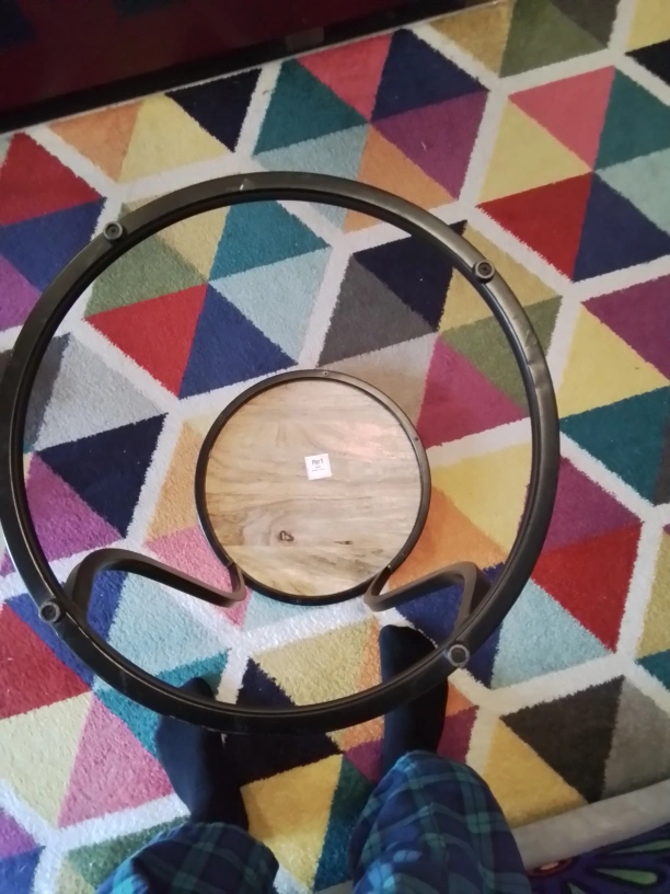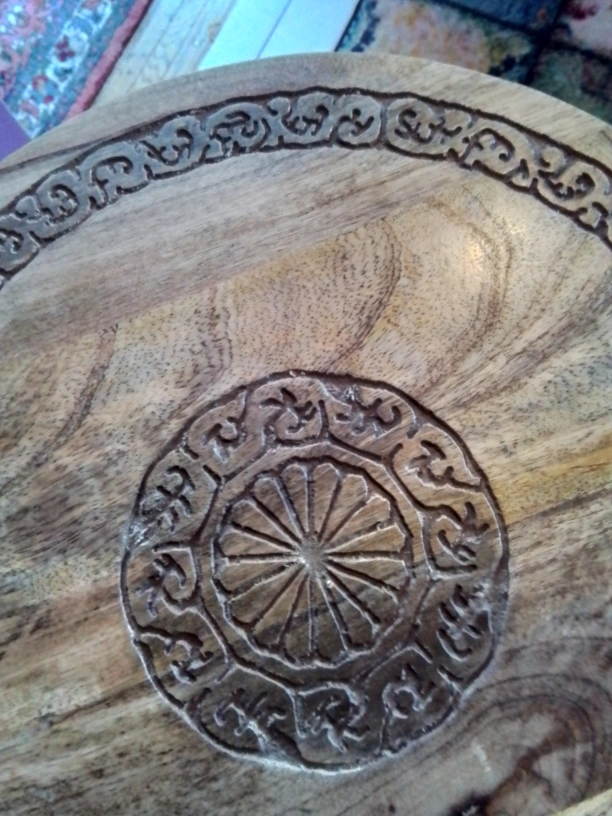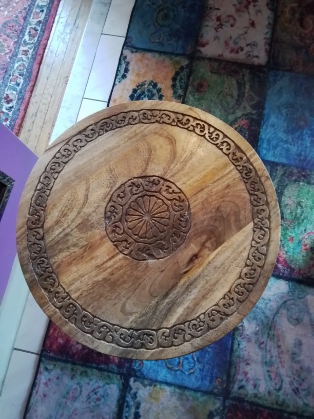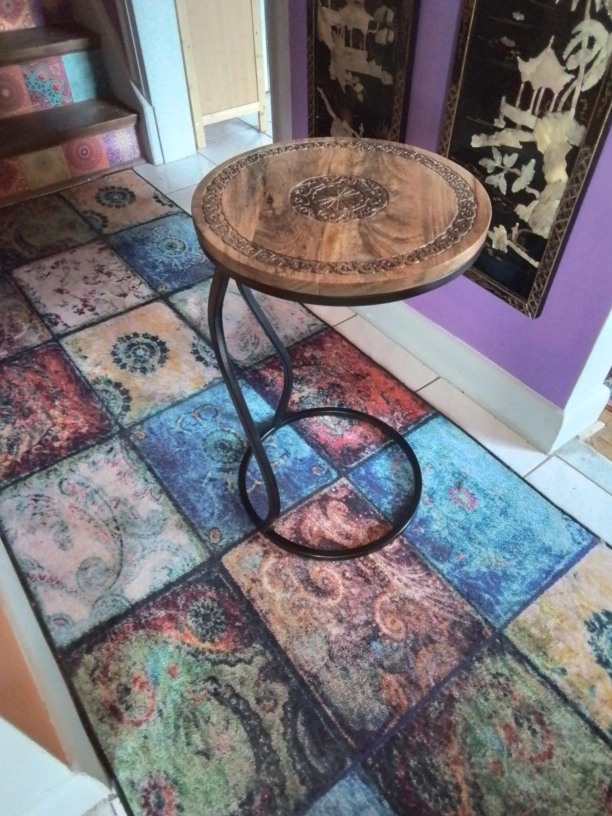 114Modernist Side Table Pier 1 Import Pier 1 Imports Wooden Accent Table Round wooden top with intricate carvings. Black metal curved base. Small side table, perfect for a living room or entryway. Very good condition. Please see photos. 15 by 24 inches Pickup at Young Street and Steels Ave