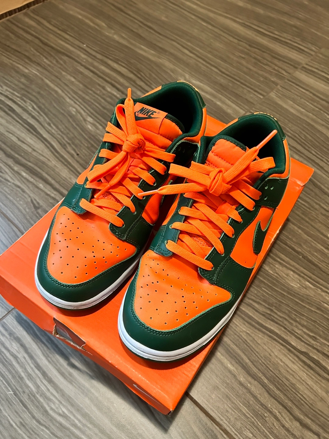 Pre-owned Nike Dunk Low sneakers. Orange and green colourway. Comes in original box.