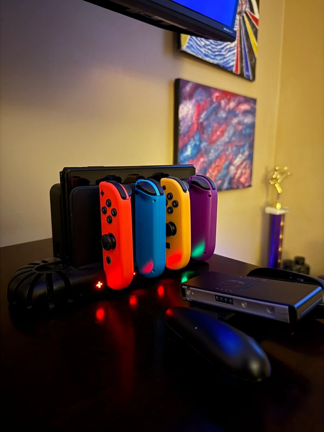 Selling my OLED Nintendo Switch in perfect condition. This console has been meticulously cared for, with no cosmetic blemishes and fully functional performance.