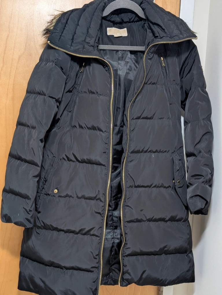 Michael Kors Black Puffer Jacket with Faux Fur Hood