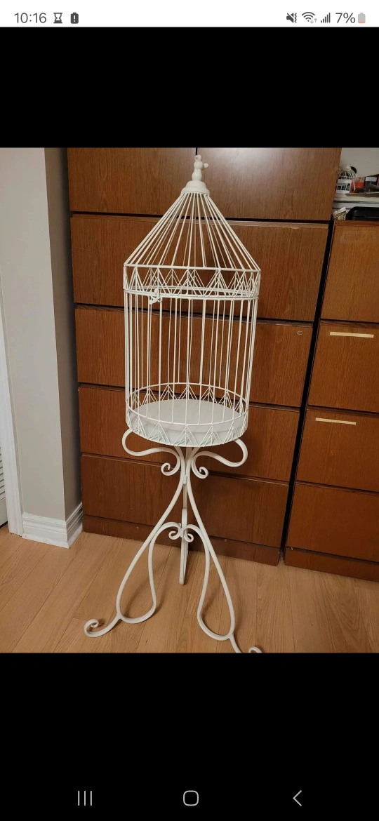 Large White Metal Birdcage Stand
