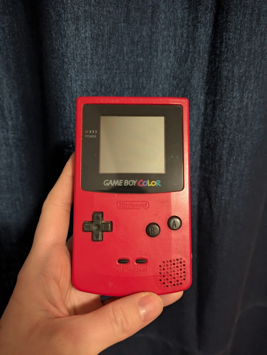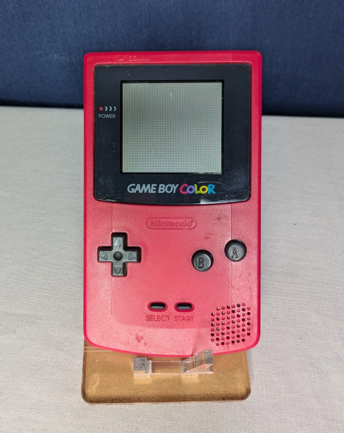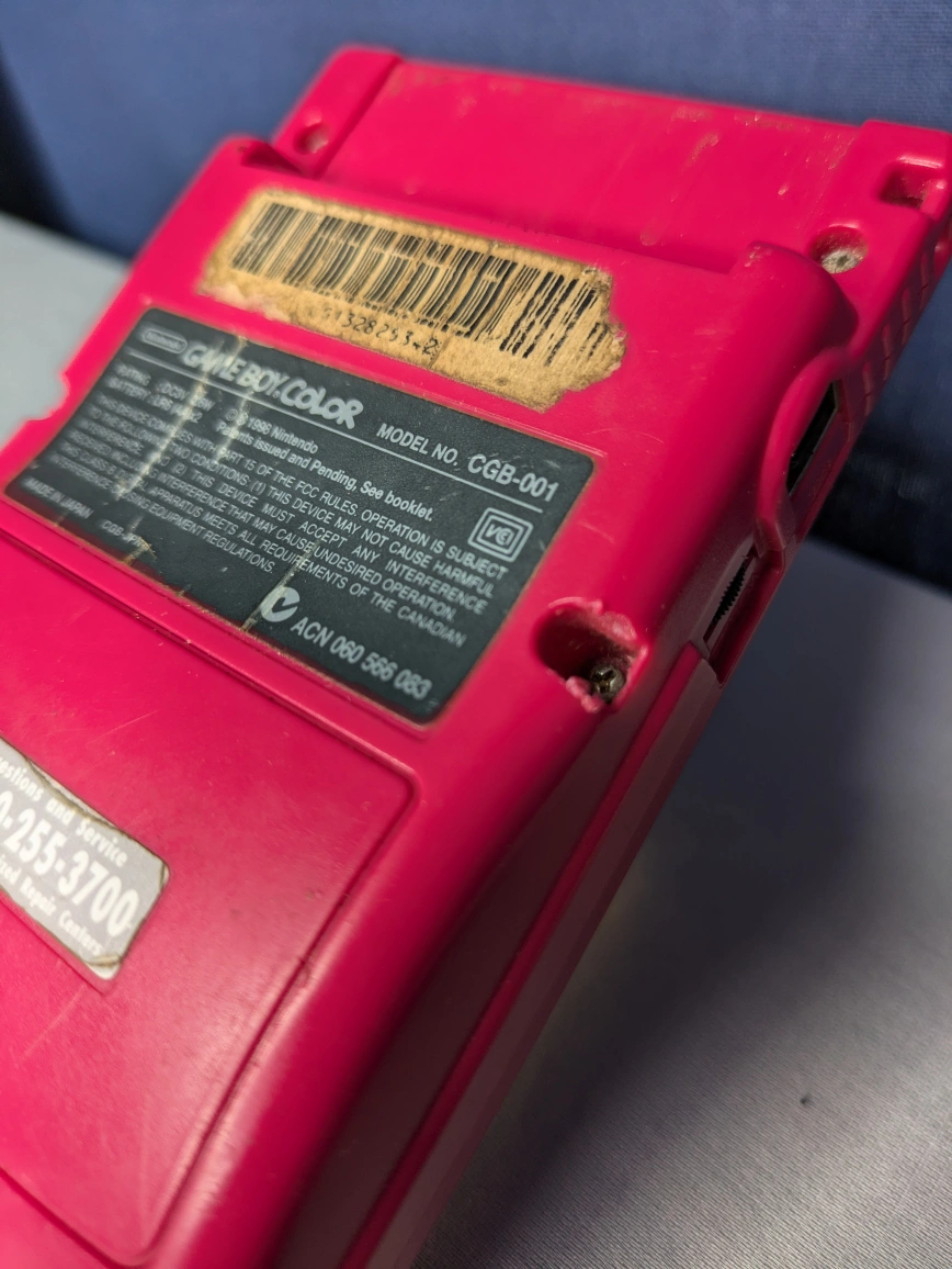 Berry Game Boy Color - both screen and sound work great! Some wear on the back screw holes from a previous owner using the wrong size screwdriver. otherwise, it's in excellent condition.