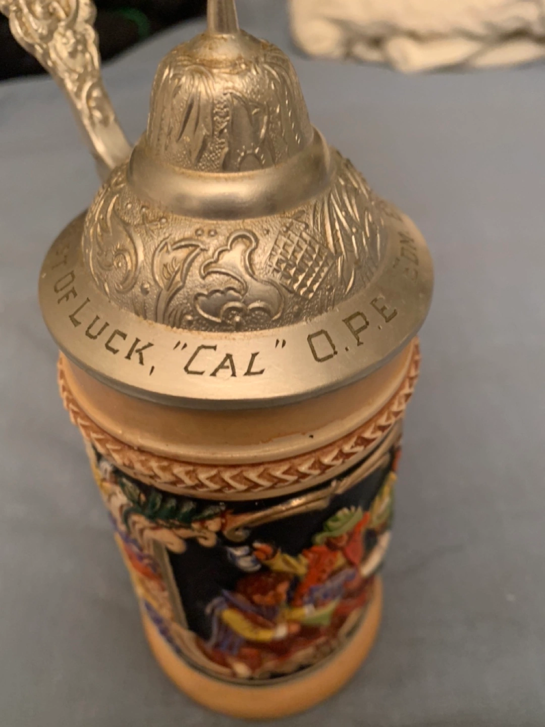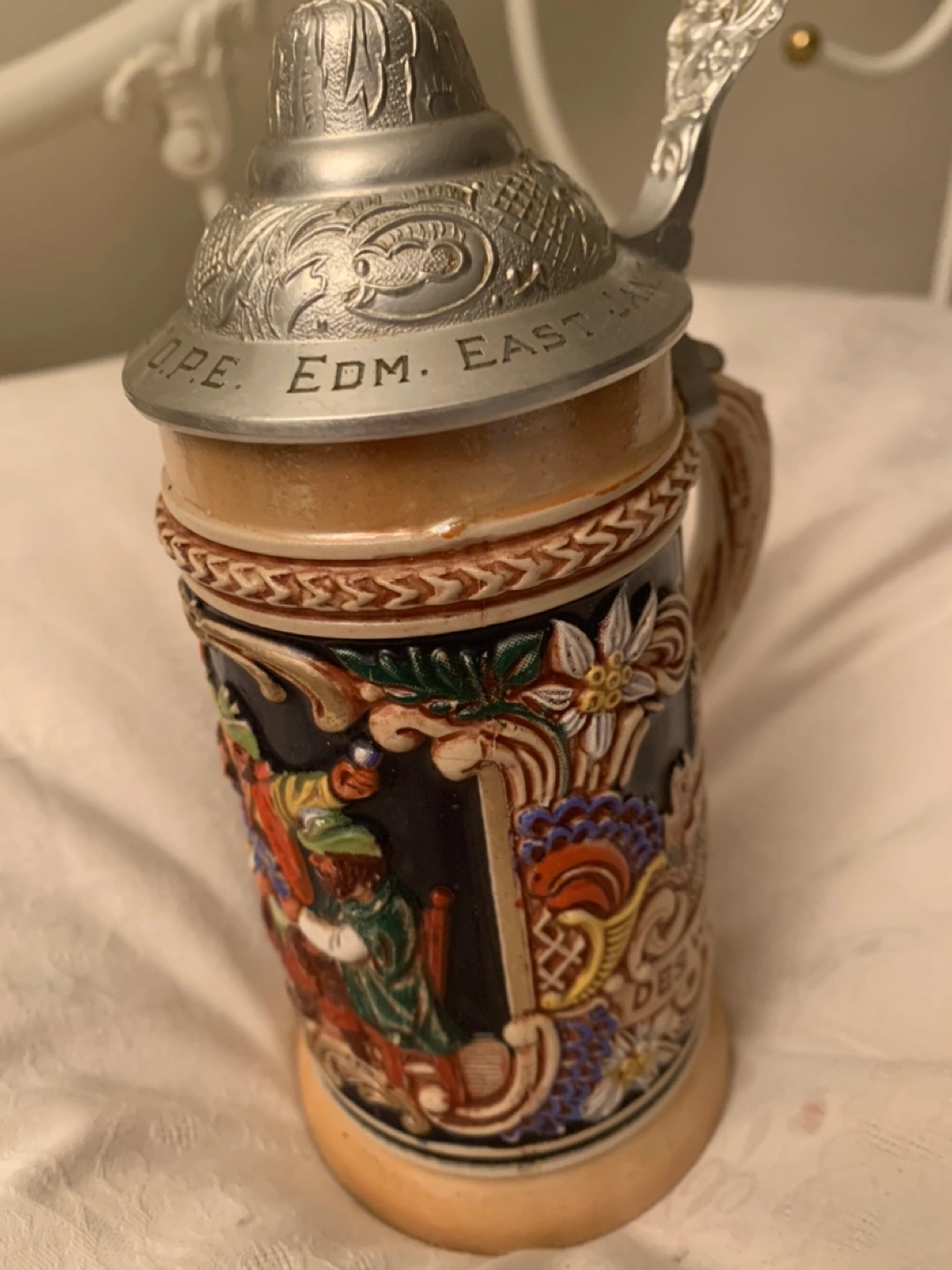 Very colourful beer ๐บ stain in perfect condition โ Vintage with lid - very collectible ..,Signed on the bottom โ Original GRAZ โ