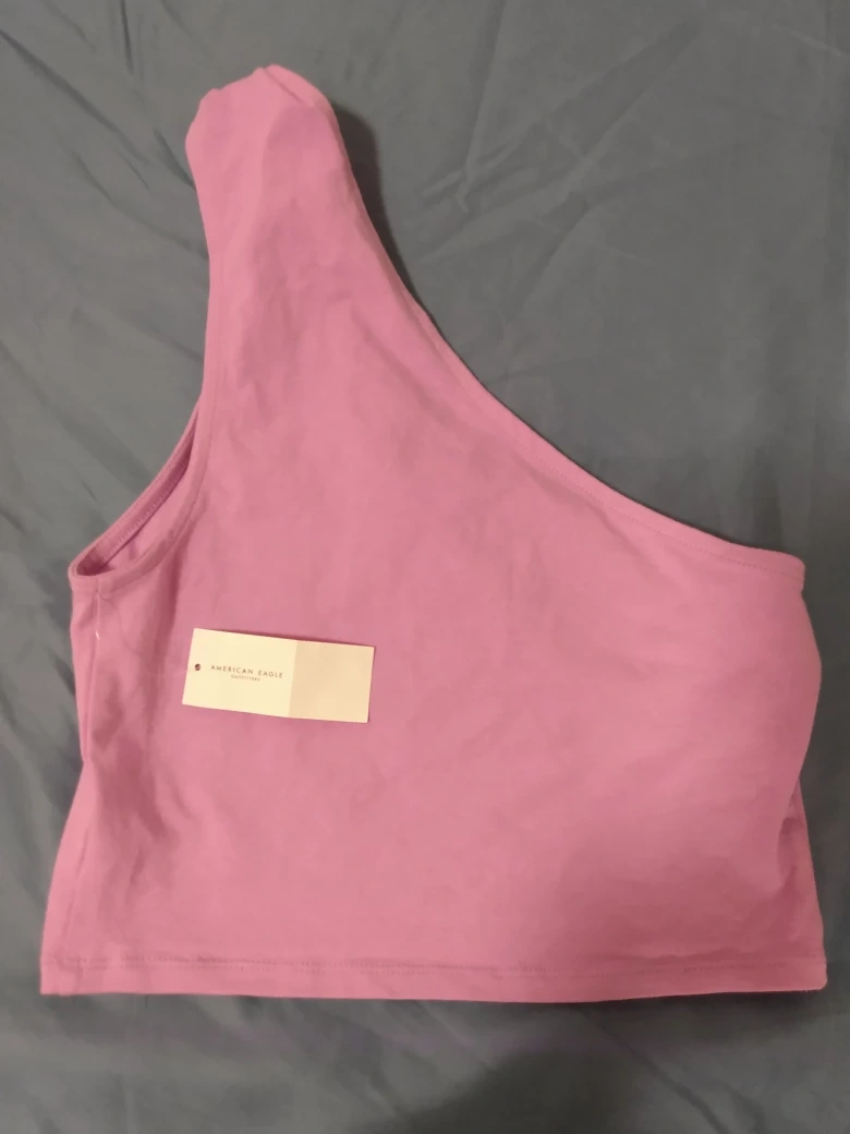 1000+American Eagle Lightweight lilac purple cropped tank top. One shoulder design. Small keyhole detail. Brand new with tags.95% Cotton 5% Elastine Machine washable Non smoking home and pet free. I can deliver to any Skytrain Station you choose or if your not near one no problem. OBO