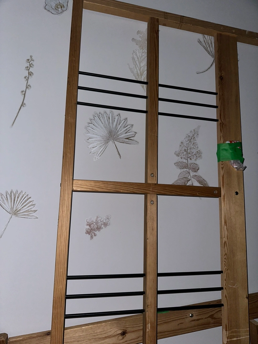 Wooden headboard and framing pieces to fit Queen Size mattress- Assembly responsible by buyer. (Bolts taped to frame in picture)