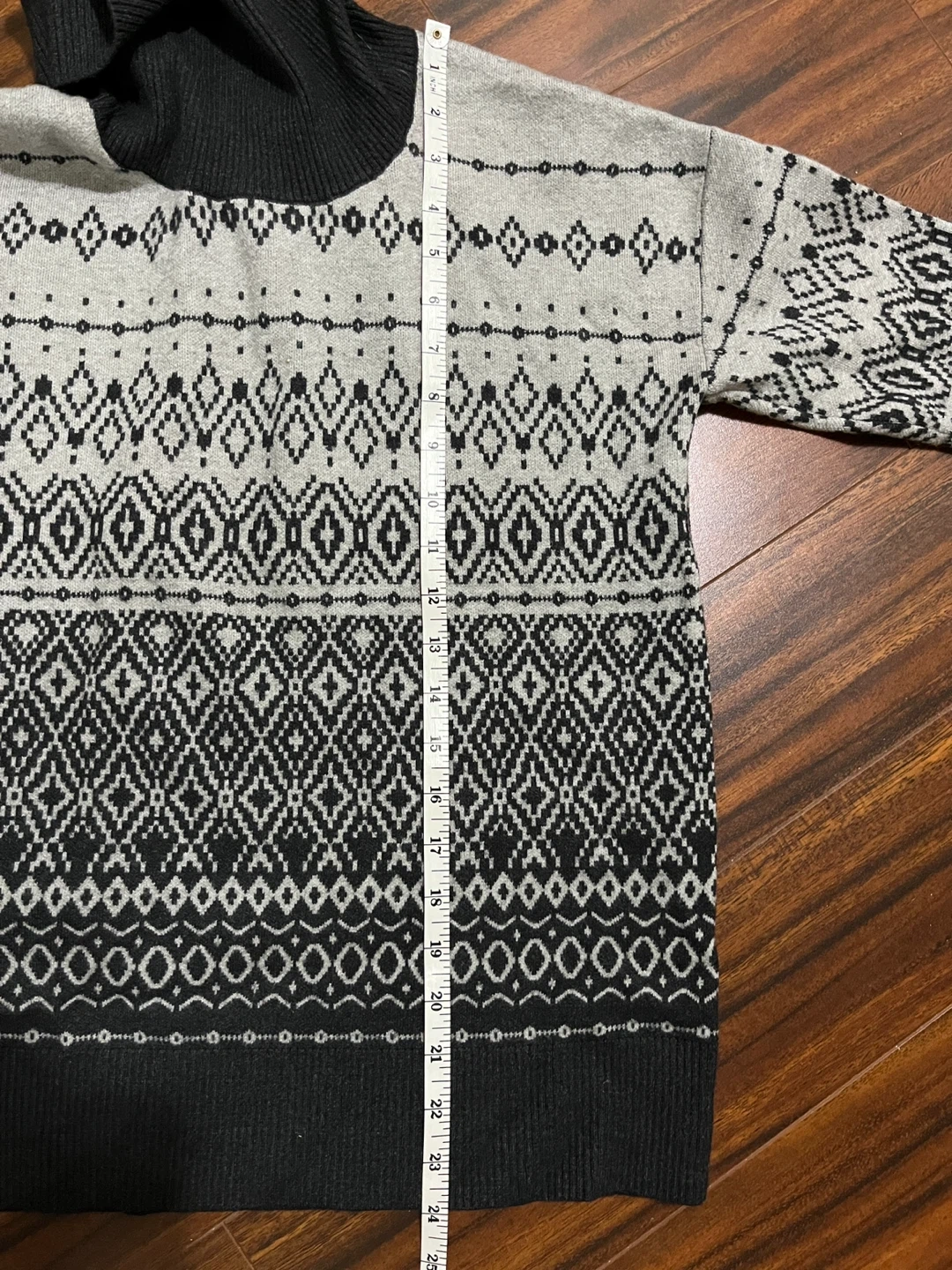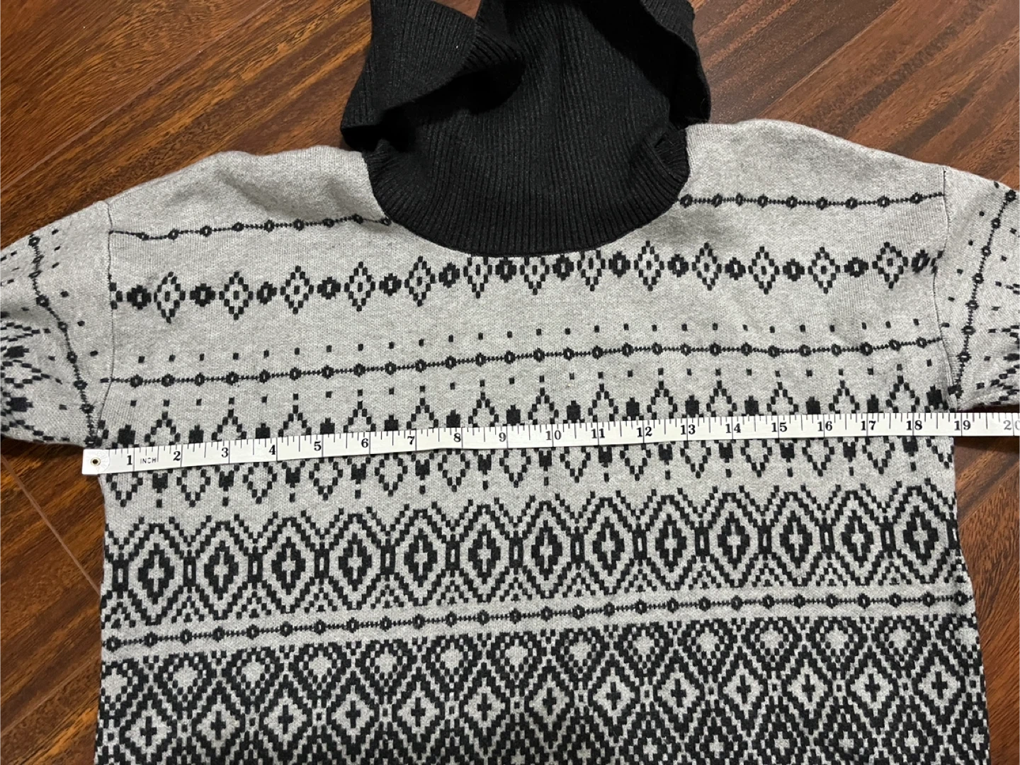Beautiful Joie women’s extra small cowl neck sweater in charcoal and grey Fair Isle. Excellent condition, soft knit, machine washable. 50% rayon, 30% polyester, 20% nylon. From a smoke free home. Premium designer brand. Originally $260.