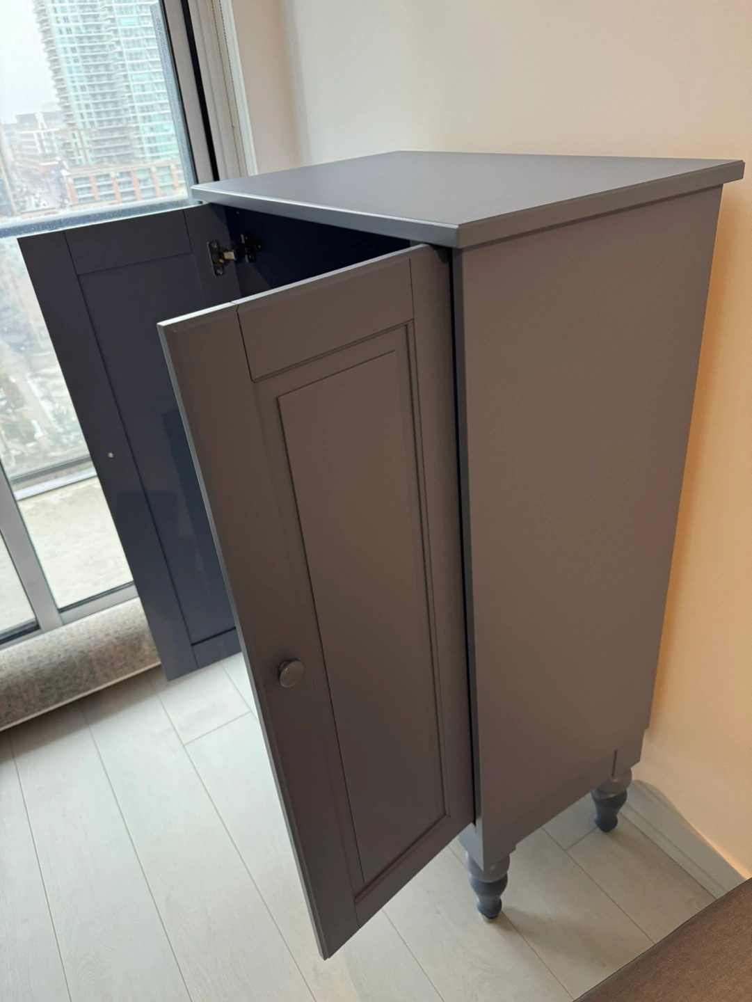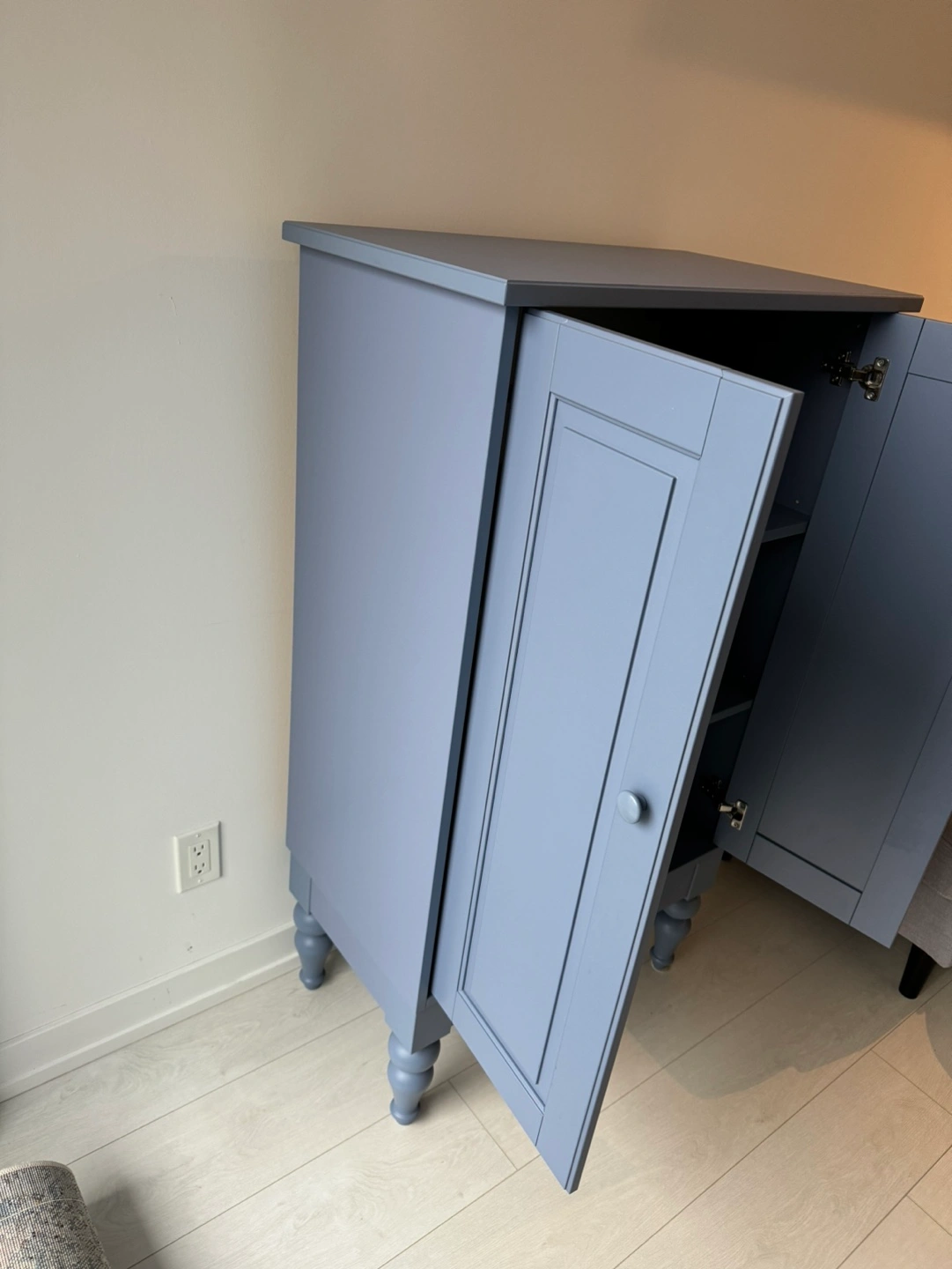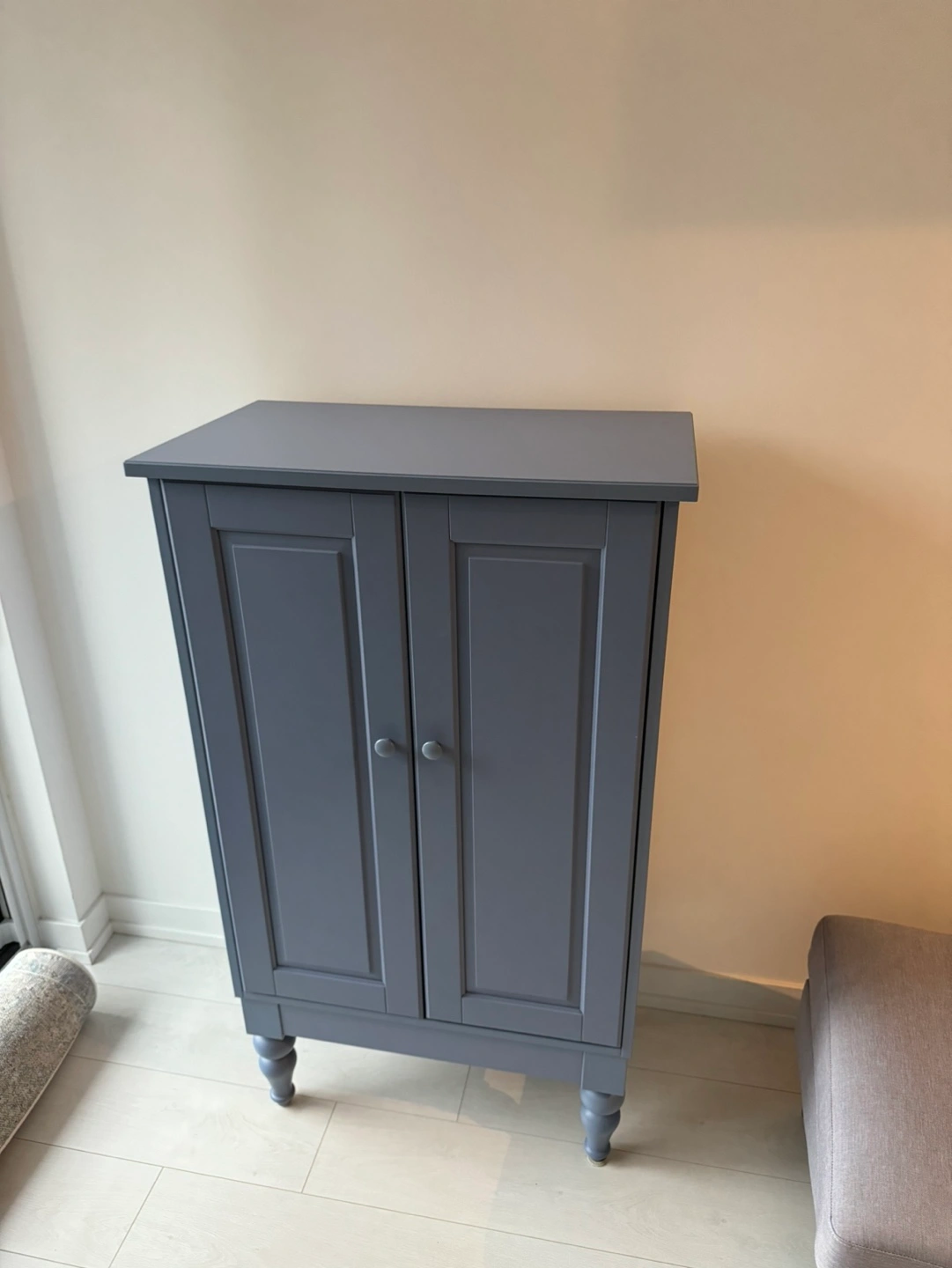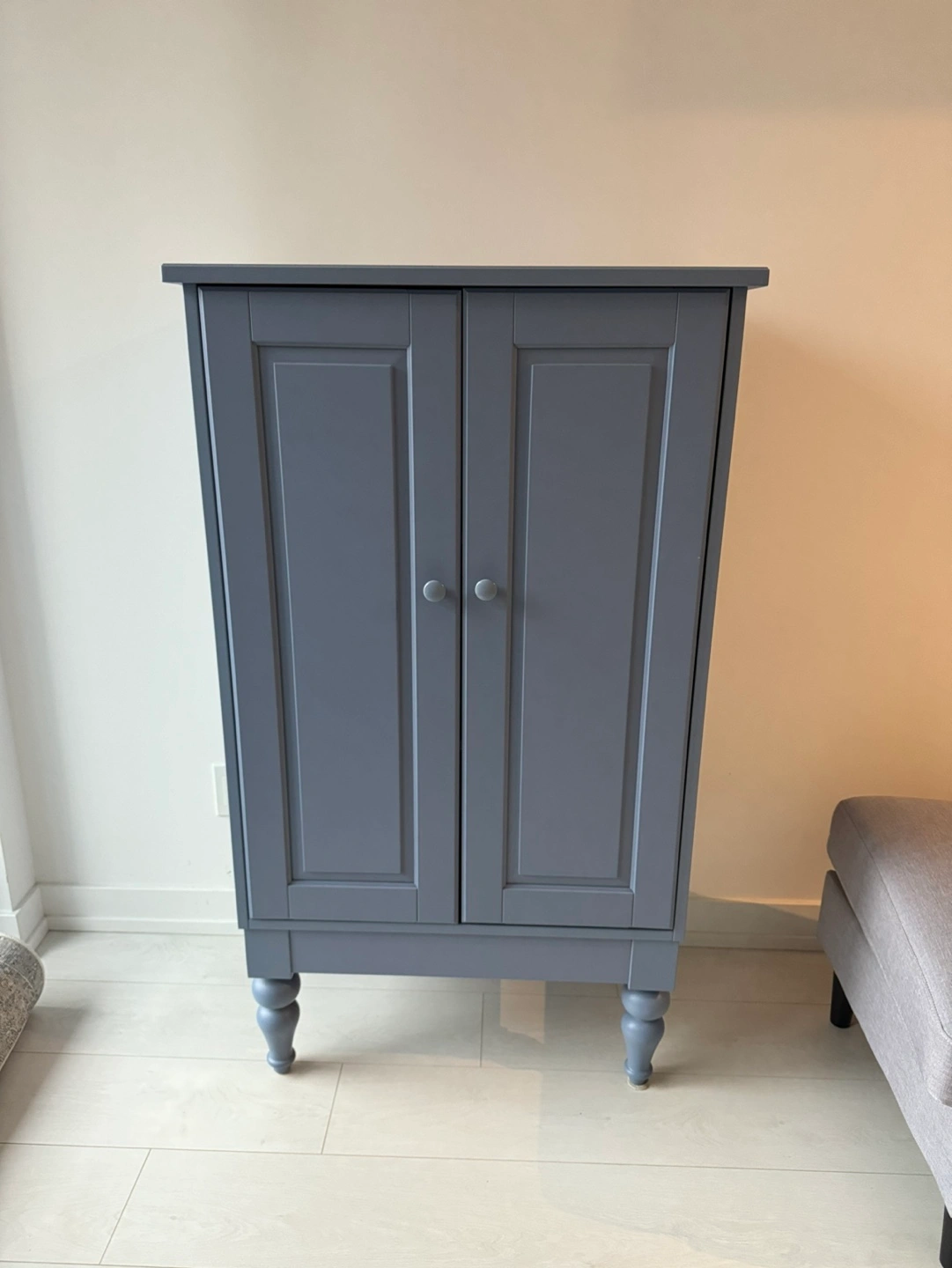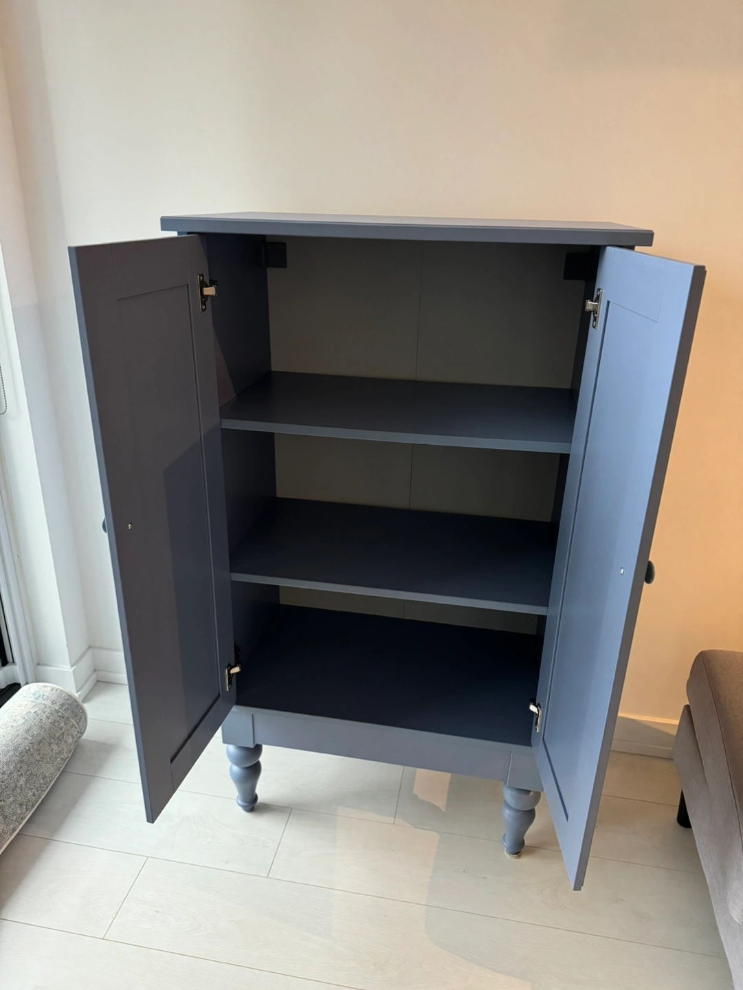 Blue IKEA Isala cabinet. Two doors, three shelves inside. Good condition.