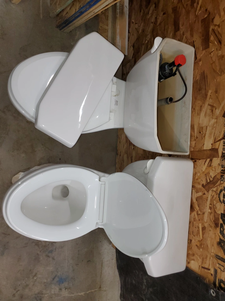 Pair of used American Standard toilets. White, complete with tanks and seats. Good for renovation projects. 50for both deliver possible for gas