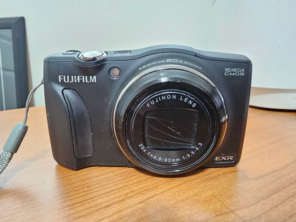 Fujifilm FinePix F750EXR digital camera. Includes carrying case. Black colour. 16 mega CMOS. 20x wide zoom lens.
