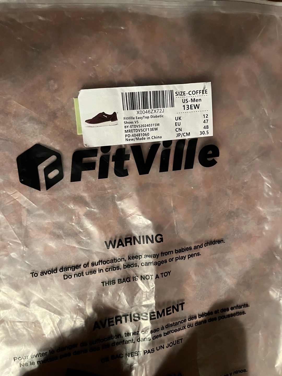 Brown slip-on shoes. Men's size 13 EW. Hook and loop closure. New in bag. Designed for senior, diabetics or people with swollen feet. Memory foam back and footbed. Excellent shoes, very convenient and easy to put on.