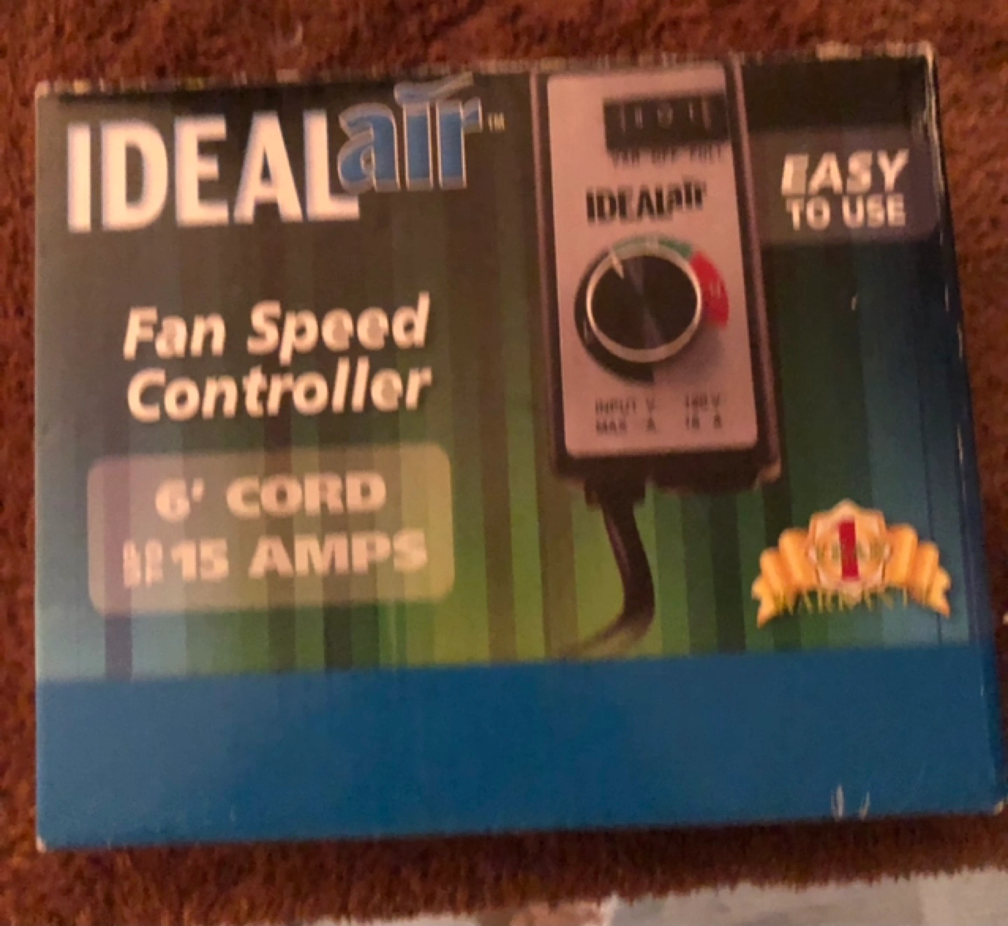 New IDEALair fan speed controller. Works with AC/DC brush-type motors 15 amps or less. Three adjustable switch settings: full, variable and off. Adjustable knob controls fan speed when switch is set to variable. Includes 6' 120 volt power cord. Will not work with soft- or slow-start motors.