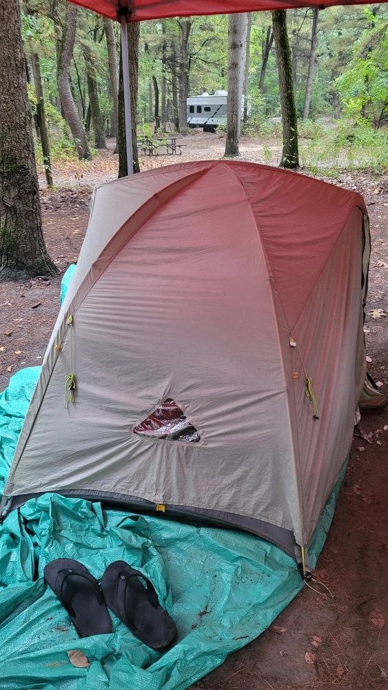 1000+Lightweight backpacking tent, excellent condition. Two-person capacity. Great for adventures. Includes all poles and stakes.This was our backup tent we used a couple of times. One side window view needs to be glued but it works perfectly fine. Helped us during a bad rainfall with minimal water issues. 2 person tent. Everything is in a bag. Located in downtown Toronto ( Yonge/Sherbourne and Bloor and Sherbourne and Wellesley) Cash or etransfer is fine.