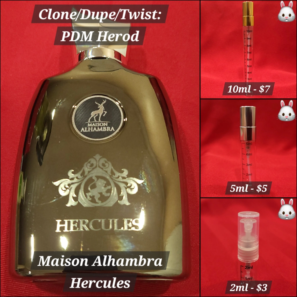 Maison Alhambra Hercules perfume, a clone of PDM Herod. Metallic bottle. Available in 2ml, 5ml, and 10ml sizes.