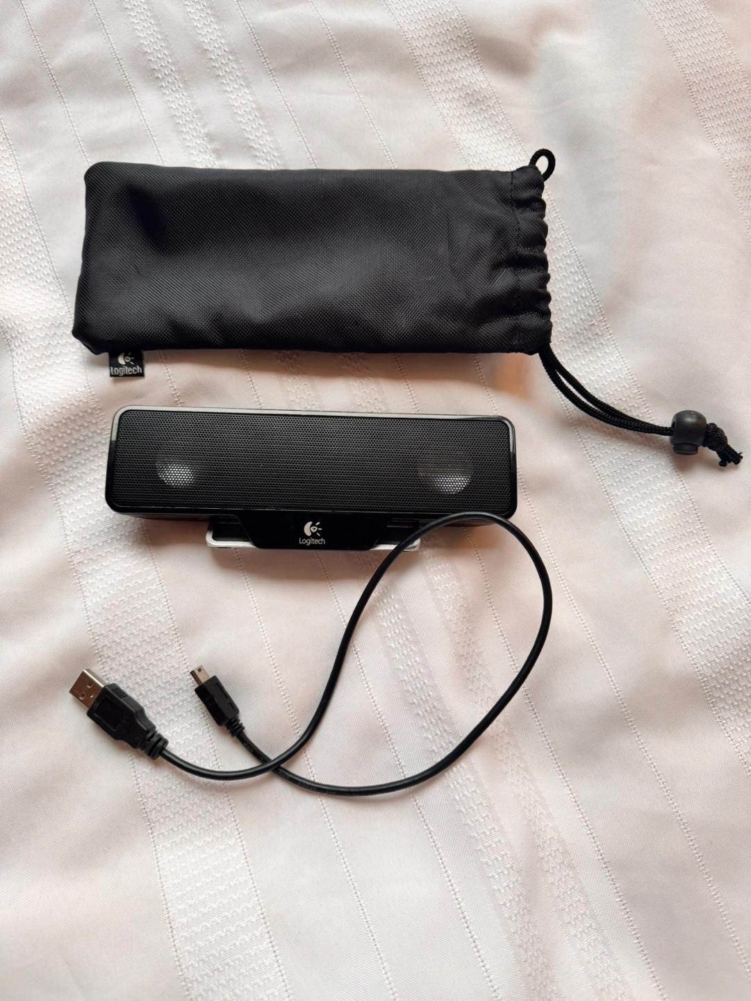 Compact USB powered speakers. Includes carrying case and USB cable. Great for laptops or desktops.
