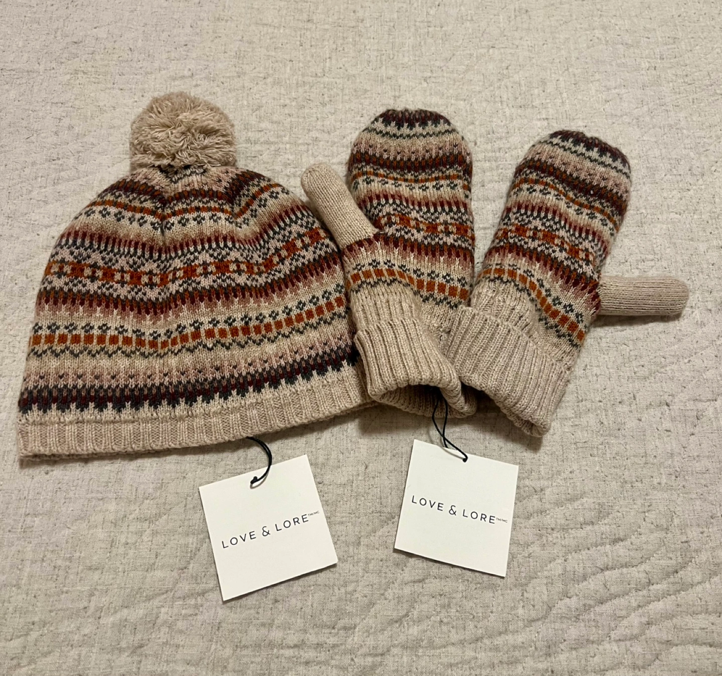 Never used Pom-pom hat and mitts, tags still attached. Pick up at Bayview & Sheppard. Cash only.